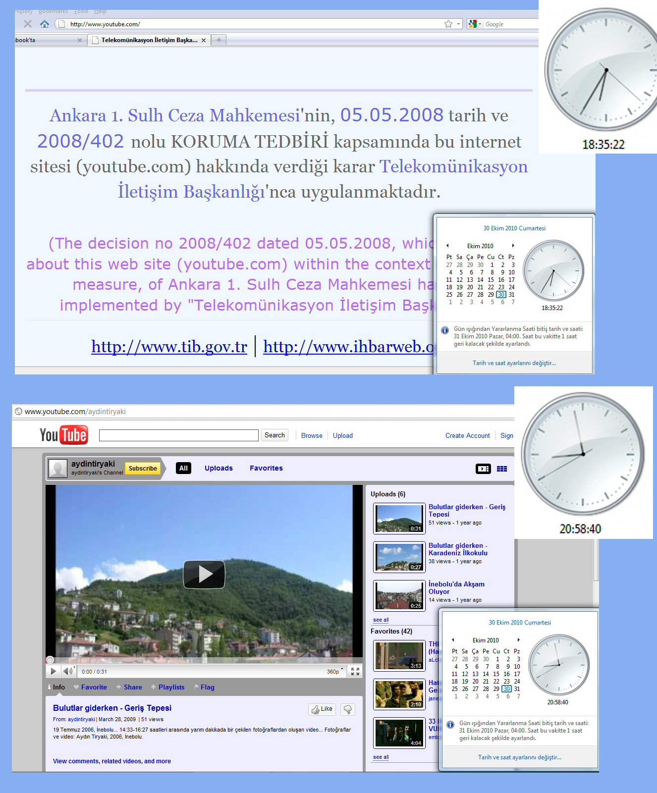 Bugün saat 18:35’de www.youtube.com adresinin görüntüsünü kaydetmiştim, kapalıydı. Saat 20:58’deki kayıtta açıktı.