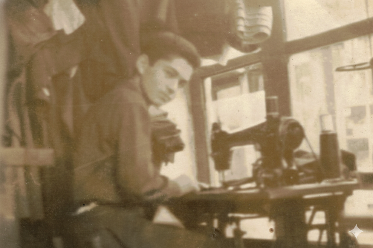 Solmuş bir fotoğrafa bakıyorum, 13 Ekim 1958 tarihli… Fotoğrafta genç bir adam dikiş makinasının başında. O fotoğraftaki benim babam ve o tarihte ben henüz doğmamışım. (1)