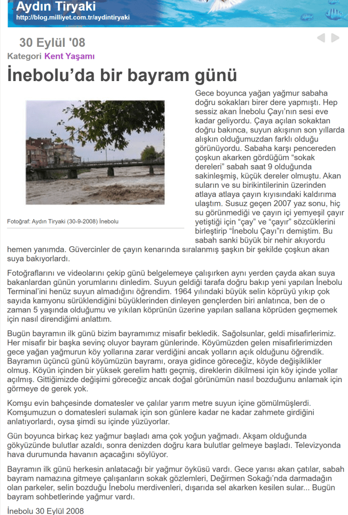 (4) Aydın Tiryaki “İnebolu’da bir bayram günü”, 30 Eylül 2008 – Milliyet Blog