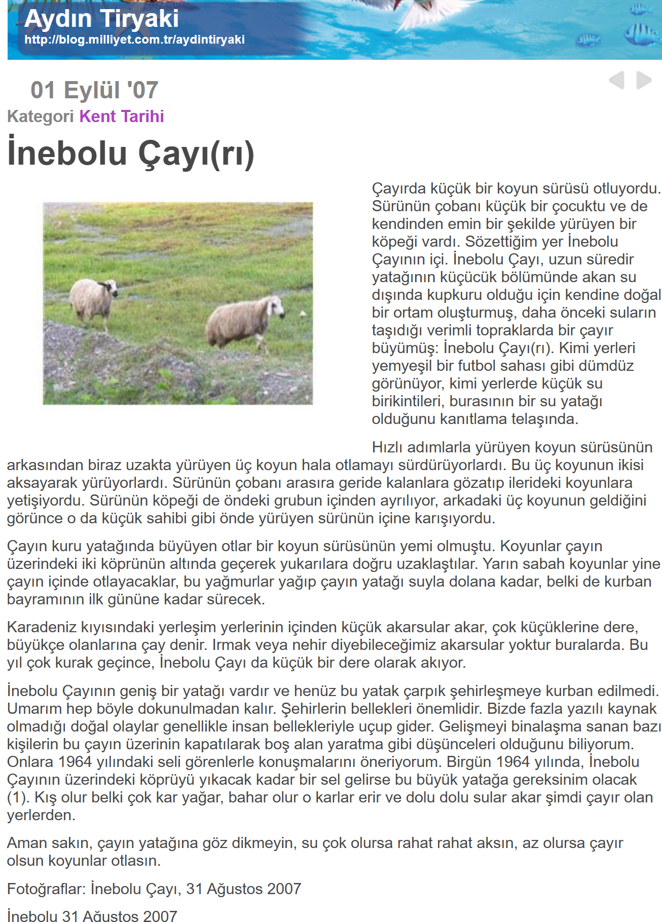 (3) Aydın Tiryaki “İnebolu Çayı(rı), 1 Eylül 2007 – Milliyet Blog