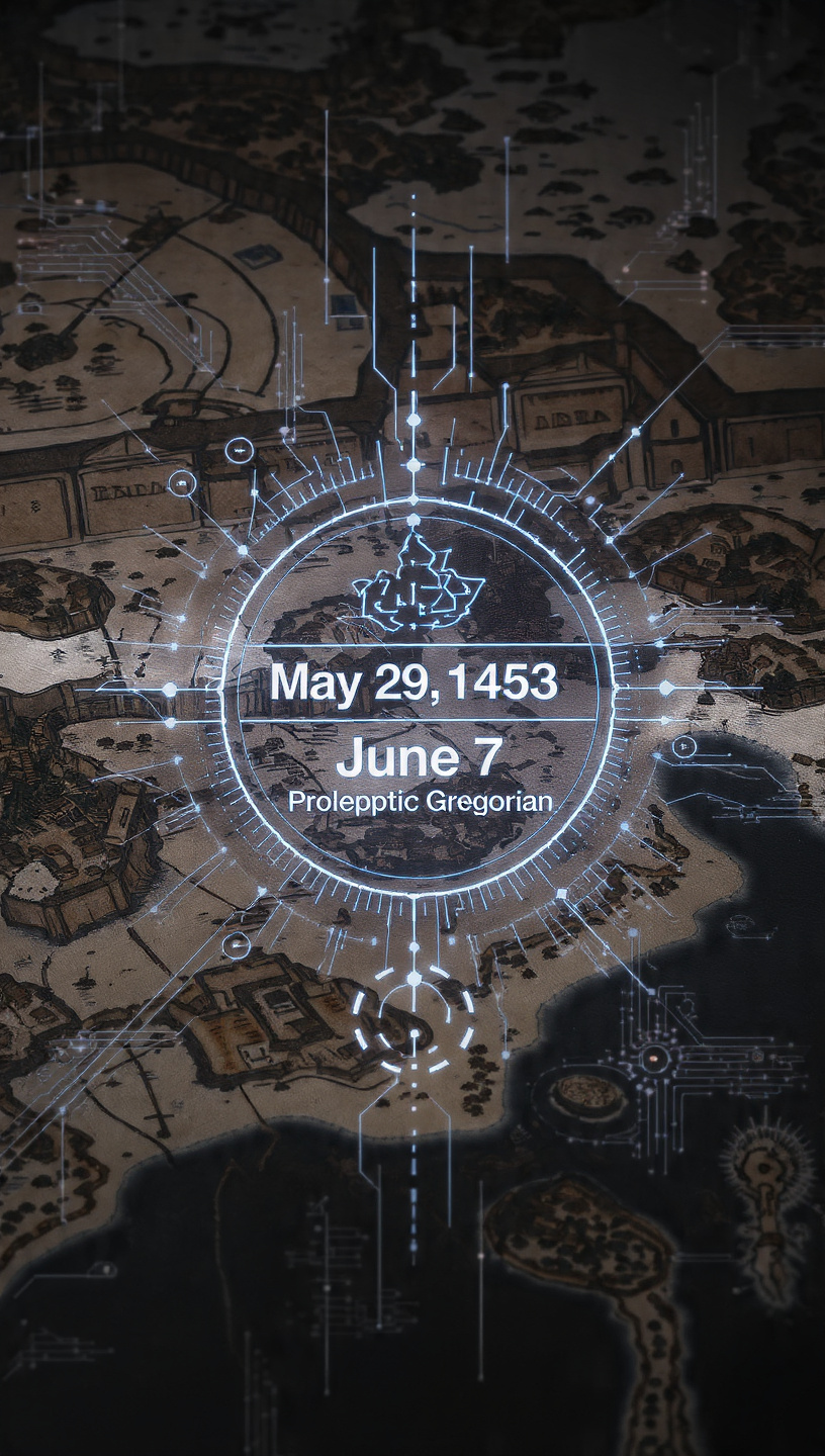 - MS 29 Mayıs 1453: Yukarıda belirtildiği gibi, İstanbul’un Fethi. Jülyen’e göre Salı, Geriye Dönük Gregoryen’e göre (7 Haziran) Çarşamba.