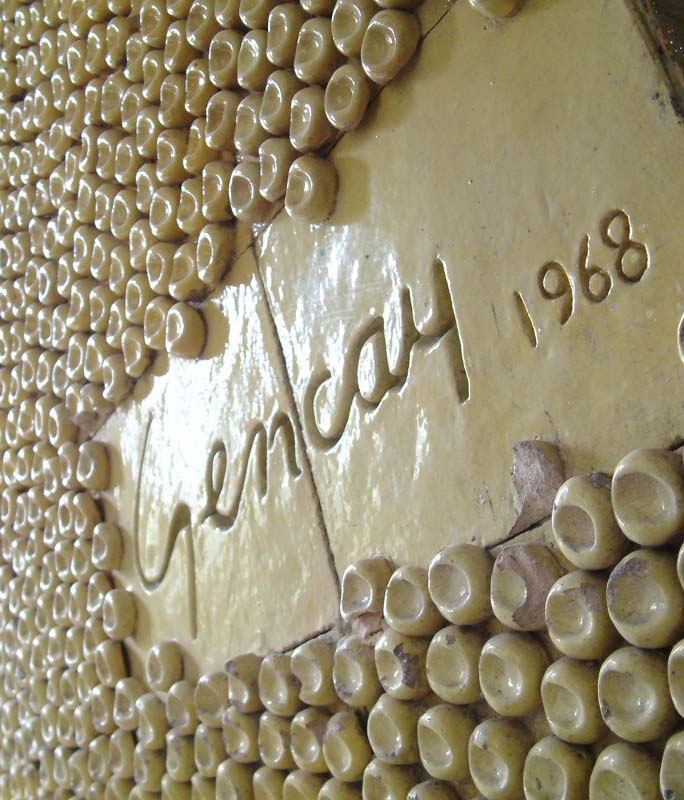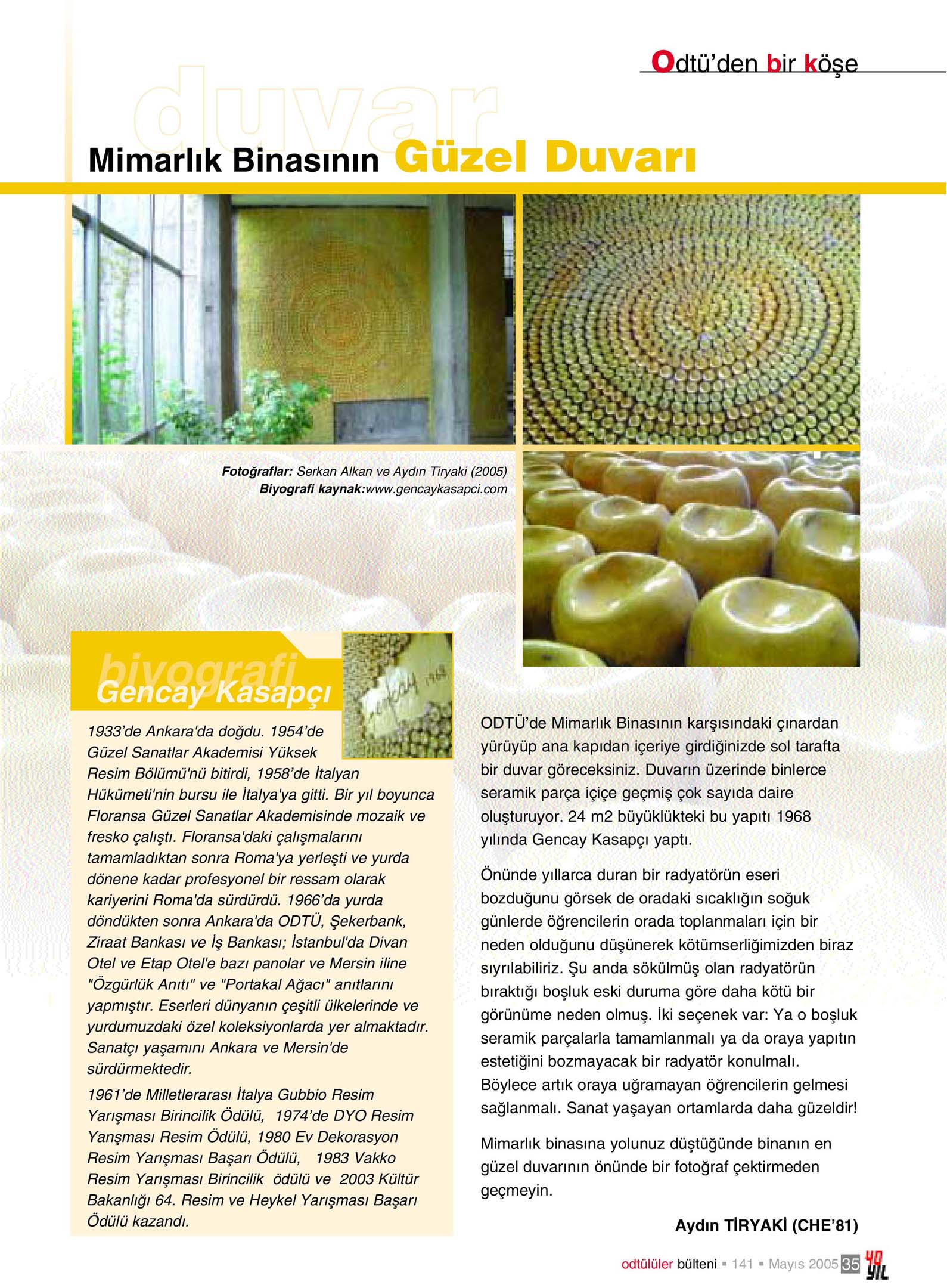 ODTÜ’de Mimarlık Binasının karşısındaki çınardan yürüyüp ana kapıdan içeriye girdiğinizde sol tarafta bir duvar göreceksiniz. Duvarın üzerinde binlerce seramik parça içiçe geçmiş çok sayıda daire oluşturuyor. 24 m2 büyüklükteki bu yapıtı 1968 yılında Gencay Kasapcı yaptı.