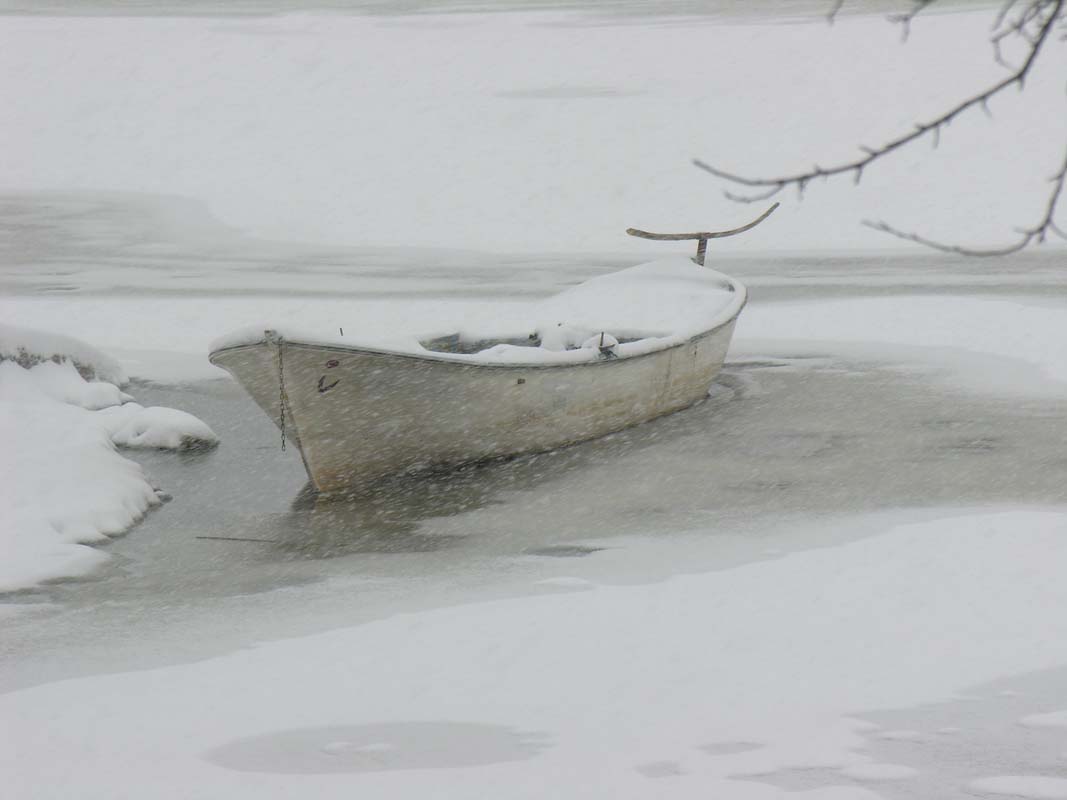 Ocak ayının son günleriydi, göl donmuştu ve her taraf bembeyazdı. Orada olduğumuz süre boyunca yoğun kar yağışı sürmüştü. Karlar altında kayıkhanenin yanında yalnız bir kayık vardı, ne kadar güzel görünüyordu, üzerinde beyaz bir örtüyle baharı bekleyen kayık. Dizlerimize kadar gömülerek ilk kez basılan karlarda yürümek, yamaçlara tırmanıp karları etrafa savurarak aşağıya inmek… Eldivensiz ellerin soğuktan hissetmemeye başladığının farkında olmadan, doğanın sunduğu güzellikleri, lapa lapa yağan kara rağmen görüntülemeye çalışmak…