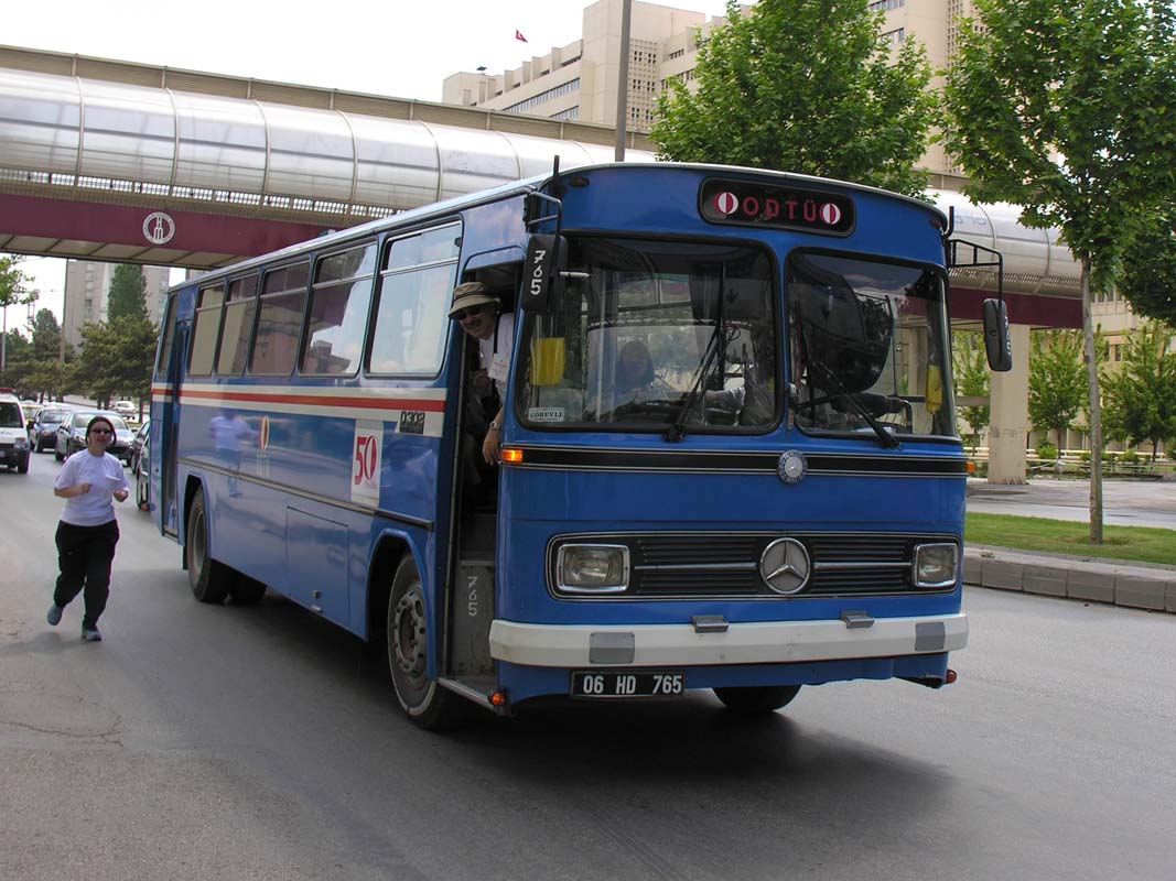 Milli Kütüphane’nin olduğu yerde bir tepecik ve yolun kenarında bir benzinlik vardı. ODTÜ durağı benzinliğin önündeydi. Sabah otobüsler 8:05’de kalkardı, gün boyunca saatte bir geçerdi. 15:45 otobüsleriyle şehre ulaştığımızda Arı, Kızılırmak, Kavaklıdere, Akün, Çankaya sinemalarının matinelerine yetişirdik. Akşam sinema son seansları son ODTÜ otobüslerine yetişecek zamanda biterdi. ODTÜ şehir dışındaydı ve mavi otobüsler dışındaki tek ulaşım o yıllarda bile antika gibi duran dolmuşlardı.