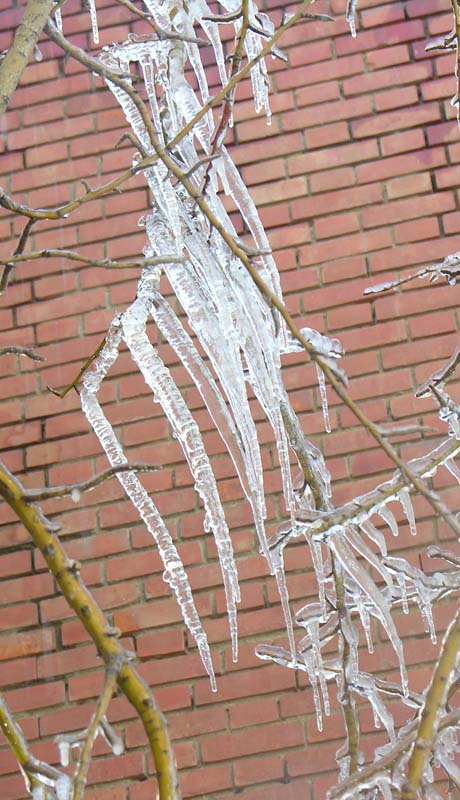Uzun zamandır süren soğuk havalarda kapının dışındaki ağacın üzerinde oluşan buz sarkıtların görüntüsü objektife takıldı, son fotoğrafları çekmeye gittiğimizde.