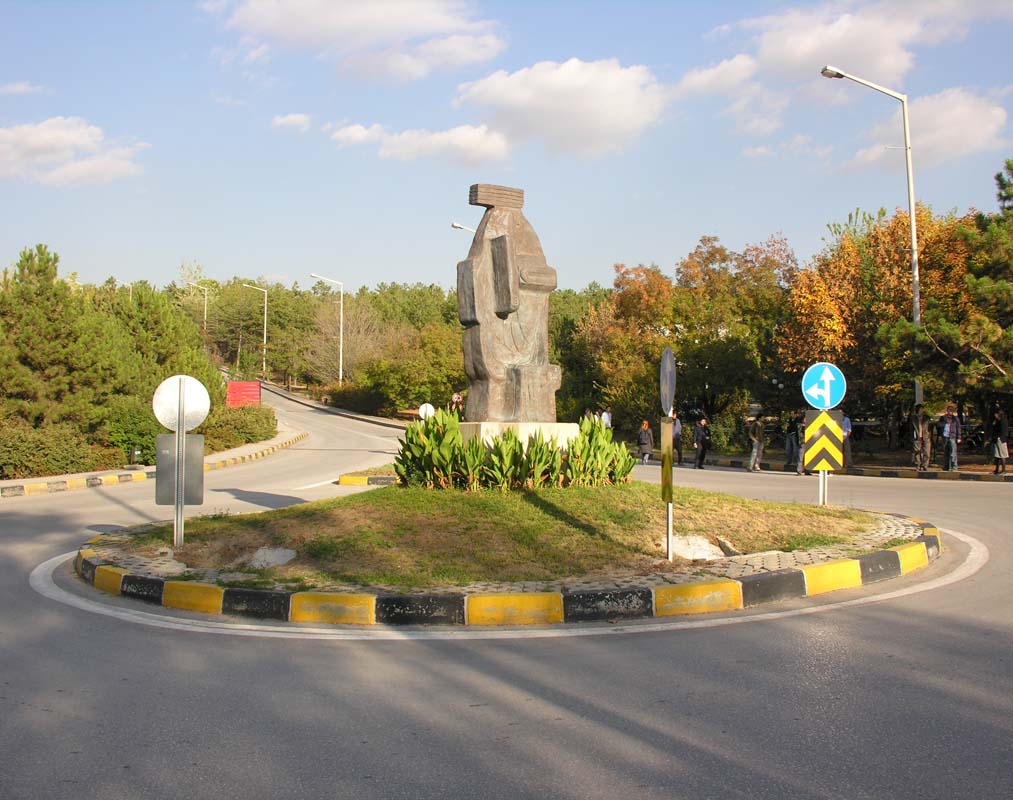 ODTÜ Yurtlarından A4 kapısına (çok bilinen adıyla jandarma kapısına) giden yoldaki kavşak üzerindeki heykeli eskiler pek bilmezler. Heykelin üzerinde heykeltraşın imzası vardır: