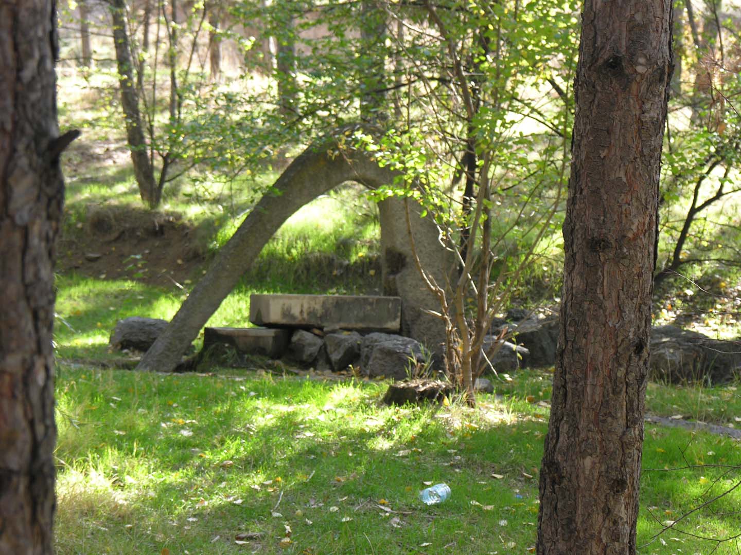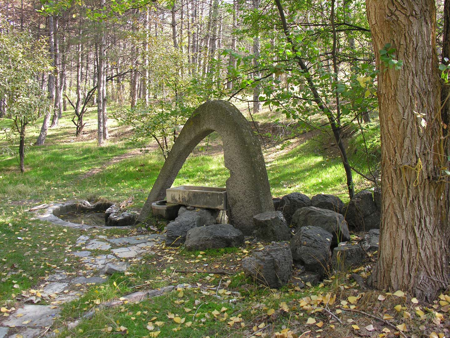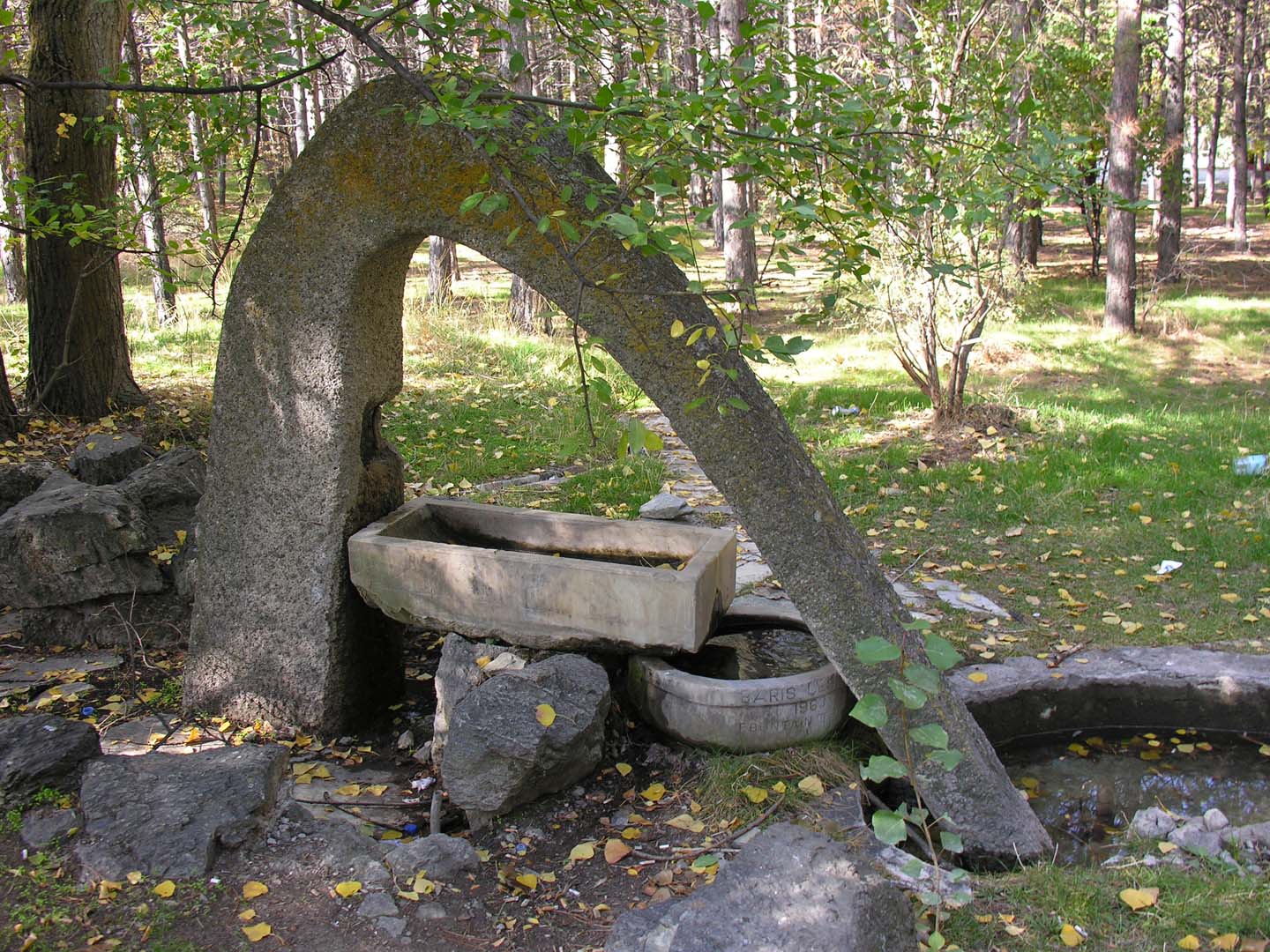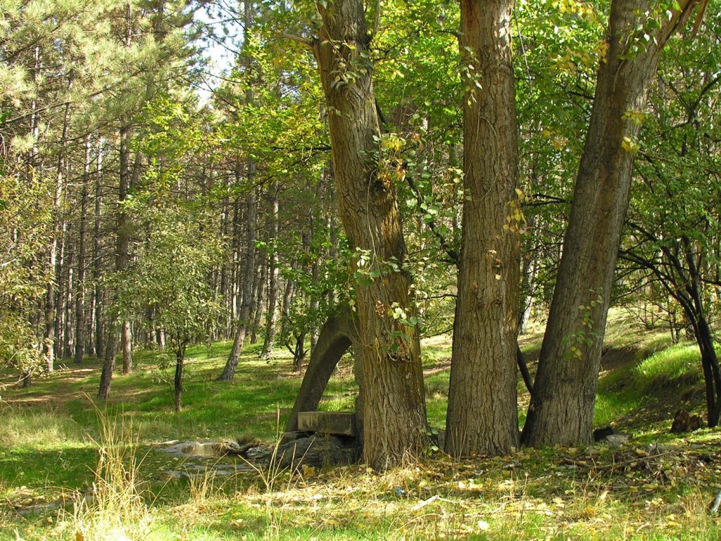 Eymir’de ağaçların arasındaki bir çeşmenin varlığından 2006’da gelen e-posta ile haberim olmuştu (1). O zamandan buyana Eymir’e her gittiğimde bu çeşmeyi bulmaya çalışmış ancak bulamamıştım. Geçen ay Eymir’e yaptığımız bir fotoğraf gezisi sırasında görevlilerden yerini öğrenmeye çalıştım. Orada yeni çalışmaya başlamışlardı ve böyle bir çeşmenin varlığından haberleri yoktu. Daha önce konuştuğumuz zamanlardan aklımda kalan bilgiyle ağaçların arasına daldım. Her an karşıma çıkabilecek köpekler için de önlemimi yerden bulduğum bir kuru dalla aldıktan sonra ağaçların arasında yürümeye başladım. Daha önce bir fotoğrafta gördüğüm şeklin gerçeğini uzaktan gördüğümde heyecanlandım. Yaklaştığımda çok iyi durumda olmadığını gördüm. Çeşmeden az da olsa su akıyordu ancak akan suya erişilmesi için düzgün bir borunun olması gerekiyordu. Çeşmeye kulak verdiğimde, eski günlerini çok özlediğini duydum, su sesinin yokluğunda (2).