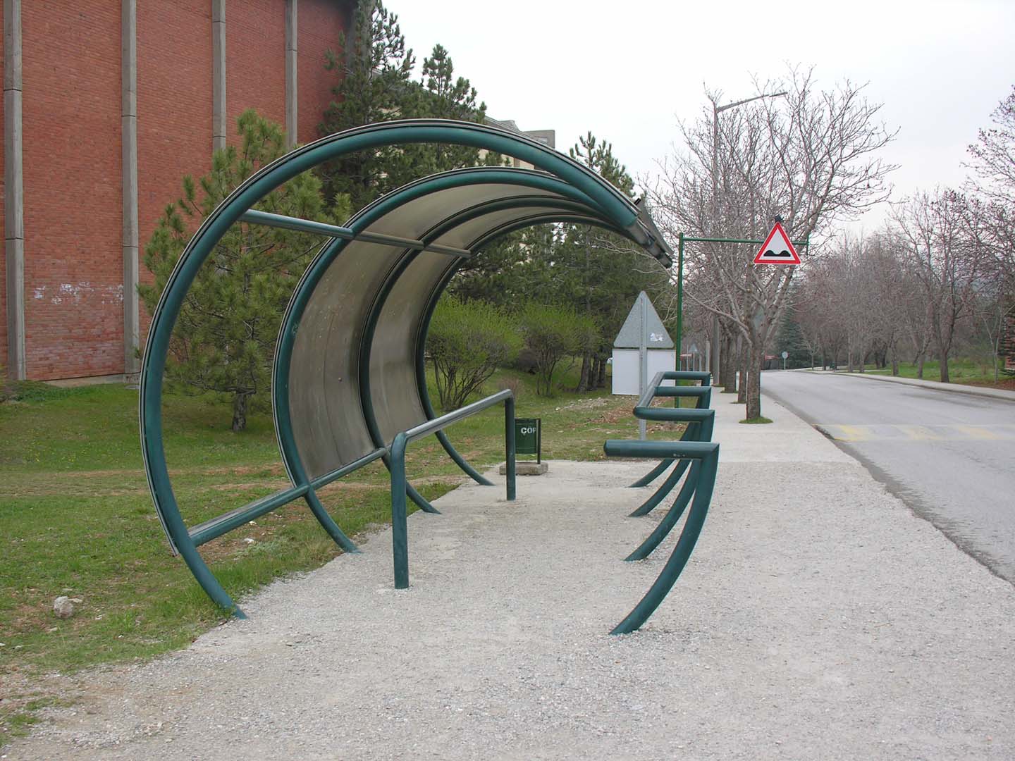 ODTÜ’nün otobüs durakları özgün tasarımı ile başka yerlerde gördüğümüz duraklardan çok farklıdır. Yan yatırılmış bir silindir görünümündeki duraklar kalın metal borulardan yapılmış, üstü ve arkası polikarbonat malzeme ile kaplıdır. Durakların görünümü, ODTÜ Logosu ve kampusun her yanındaki lambaların üzerindeki küresel korumalarla çok güzel bir uyum sergiler.