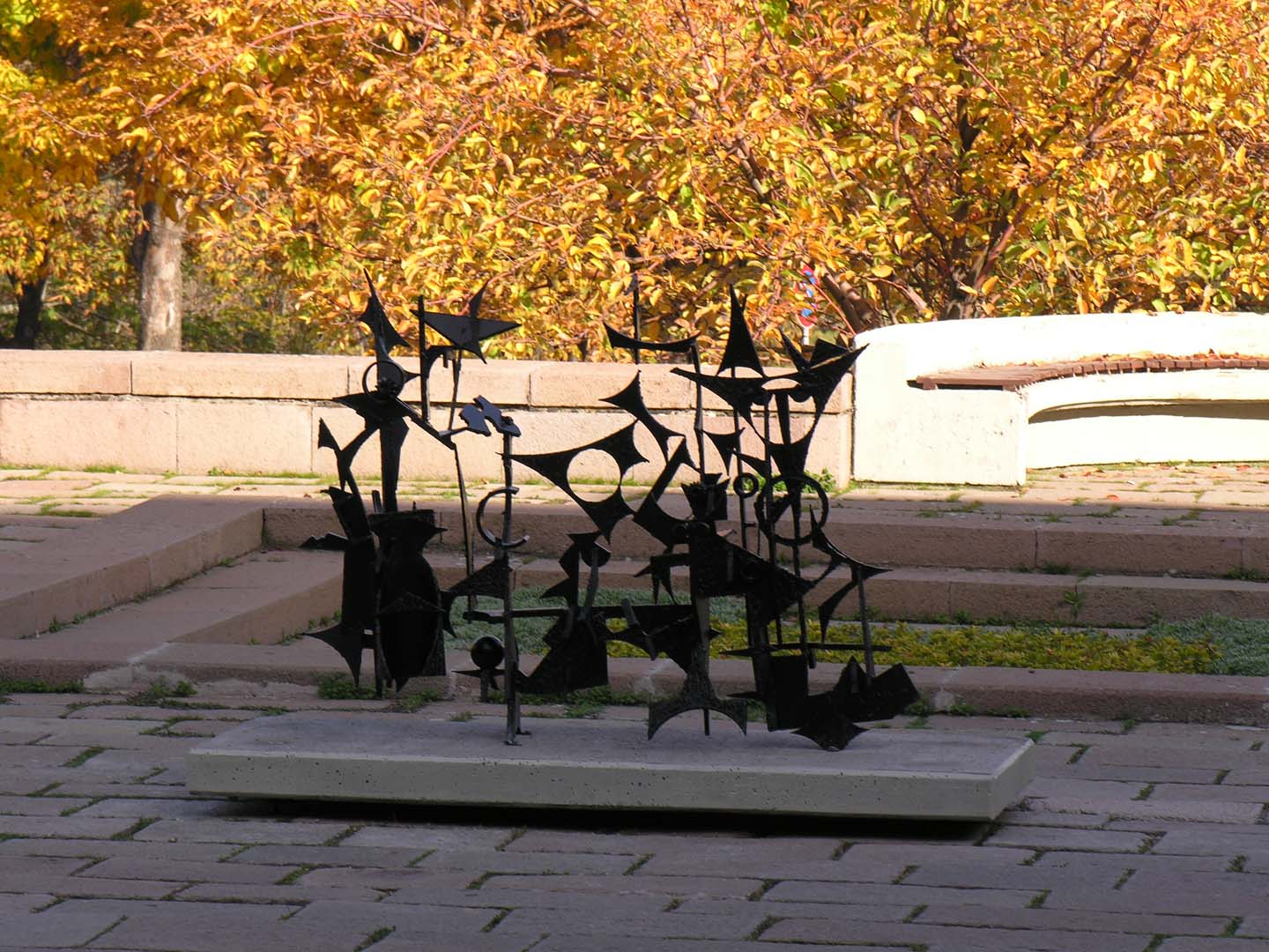 Heykel, Dündar Elbruz tarafından yapılmış. Dündar Elbruz 60’lı yıllarda ODTÜ Mimarlık Fakültesinde öğretim üyesi olarak çalışmış. Mimarlığın yanısıra heykel çalışmaları da yapmış. Kaya Özsezgin, “Metal malzemeyi bir heykel oluşumu içersinde değerlendirme sorunu, özellikle heykelimizin son çeyrek yüzyılı için sanatçıları uğraştıran ve düşündüren bir konu olmuştur” dediği ve Kuzgun Acar’ı anlattığı yazısında, Dündar Elbruz’u da Kuzgun Acar’ı kuvvetle anımsatan yönelişler içinde gördüğü sanatçılar arasında saymıştır.