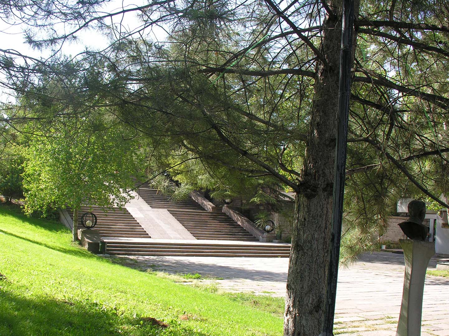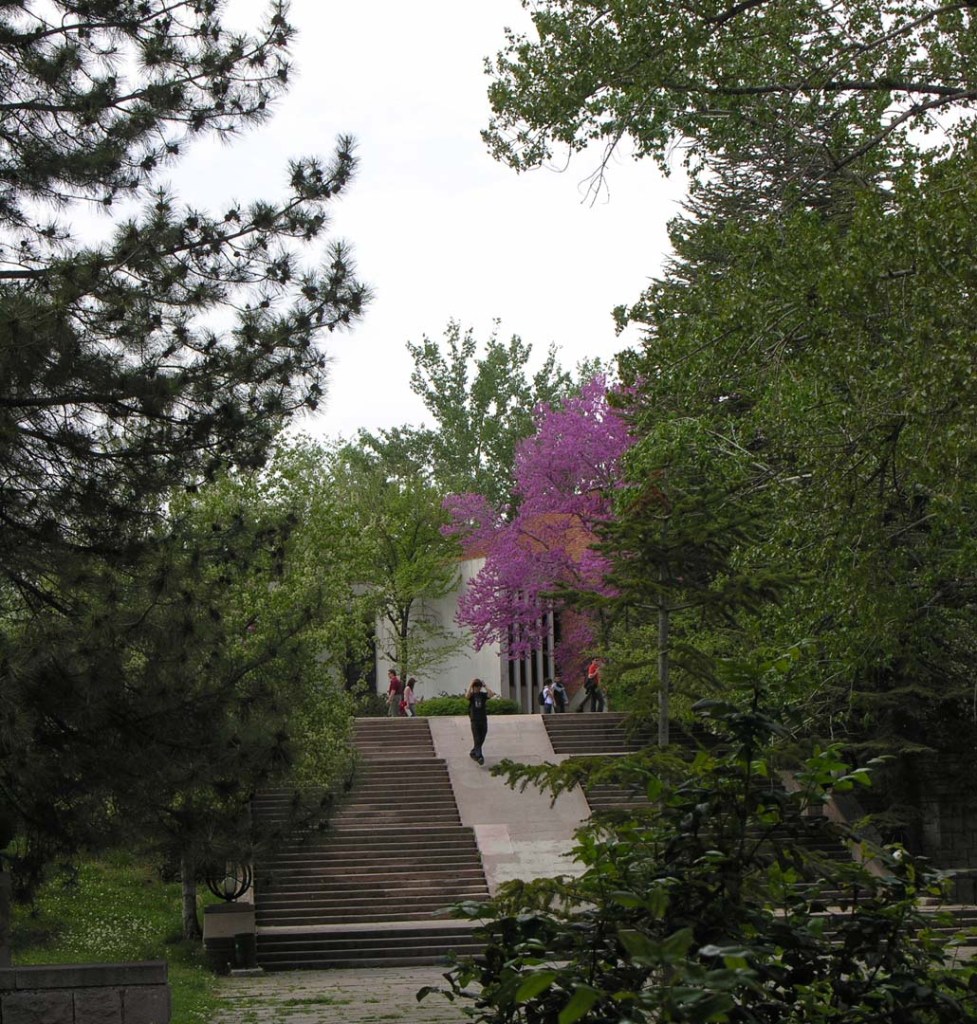 İki yıl önce alledeki merdivenleri yazarken bu merdivene de değinmiştim (1): “Mimar Behruz Çinici ile konuşmuştuk. Merdivenleri Atatürk Anıtının bir parçası olarak düşündüğünü, merdivenlerin ortasındaki eğimli zemin üzerine Atatürk’ün sözlerini yazmak istediğini, ama bu düşüncesinin gerçekleştiremediğini anlatmıştı.” O sözler merdivenin solundaki anıt üzerinde çepeçevre yazılı, okunmayı bekliyor.