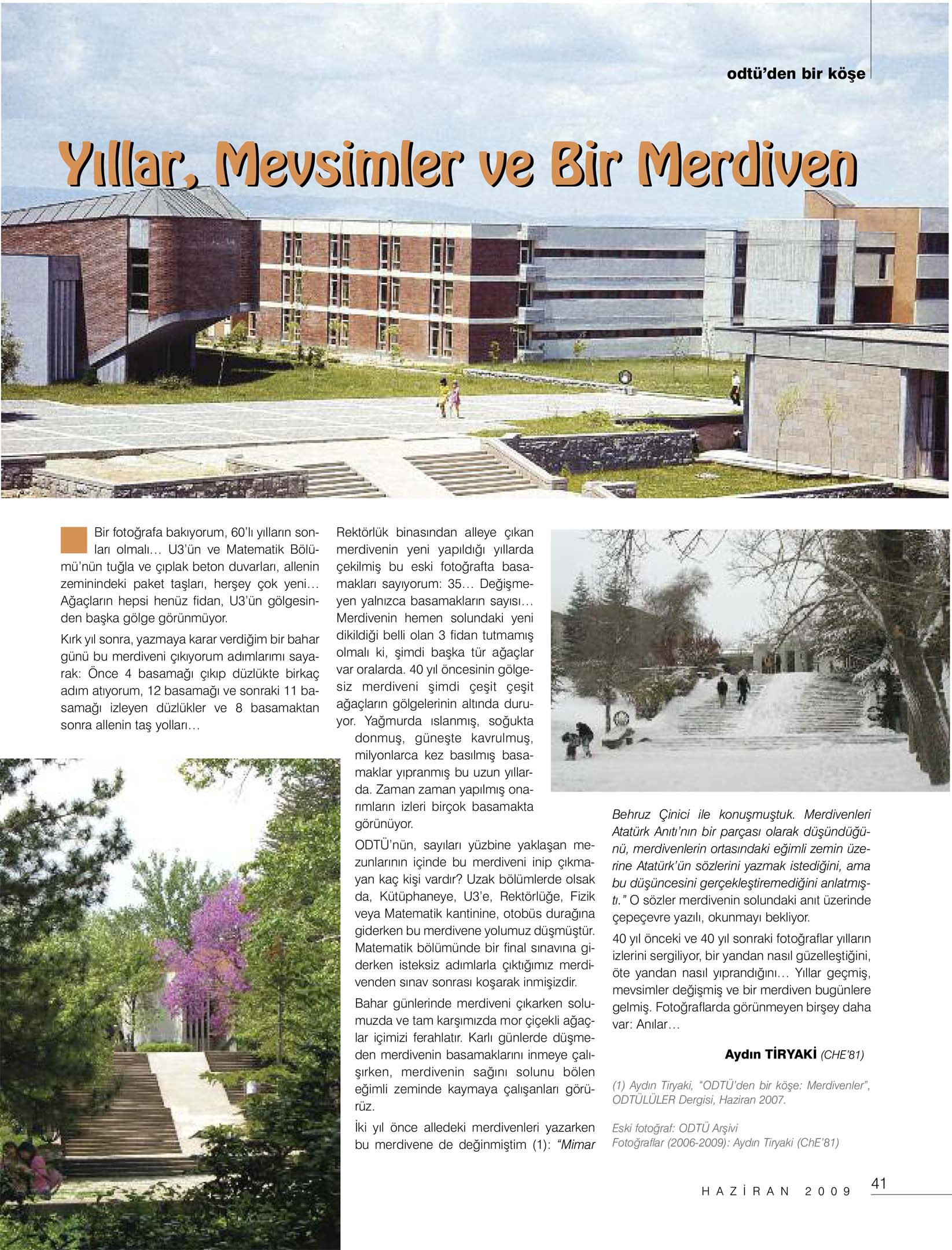 - Aydın Tiryaki, “ODTÜ’den bir köşe: Merdivenler”, ODTÜLÜLER Dergisi, Haziran 2007.