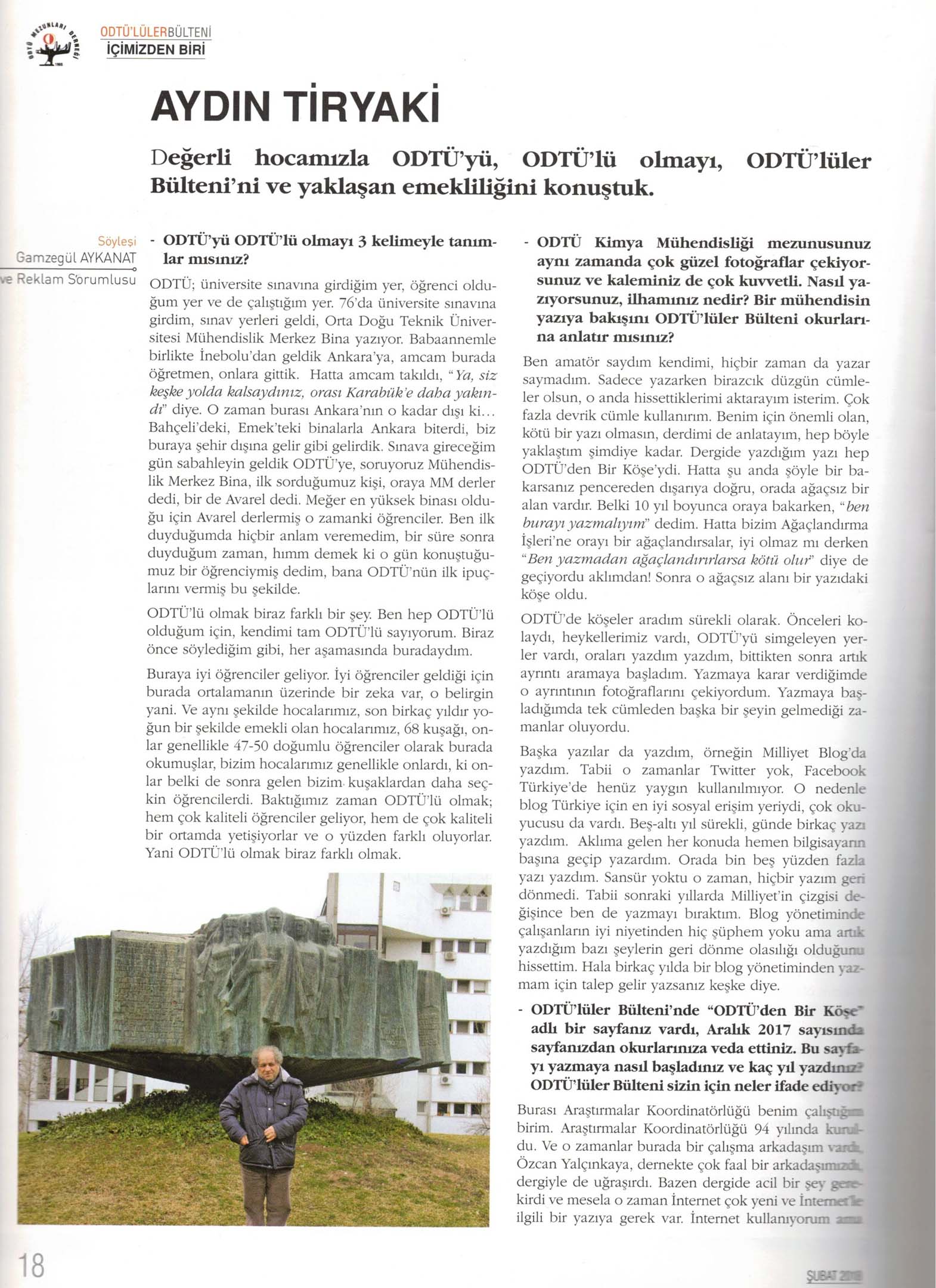 ODTÜ’den Bir Köşe – ODTÜlüler Bülteni (Şubat 2018)