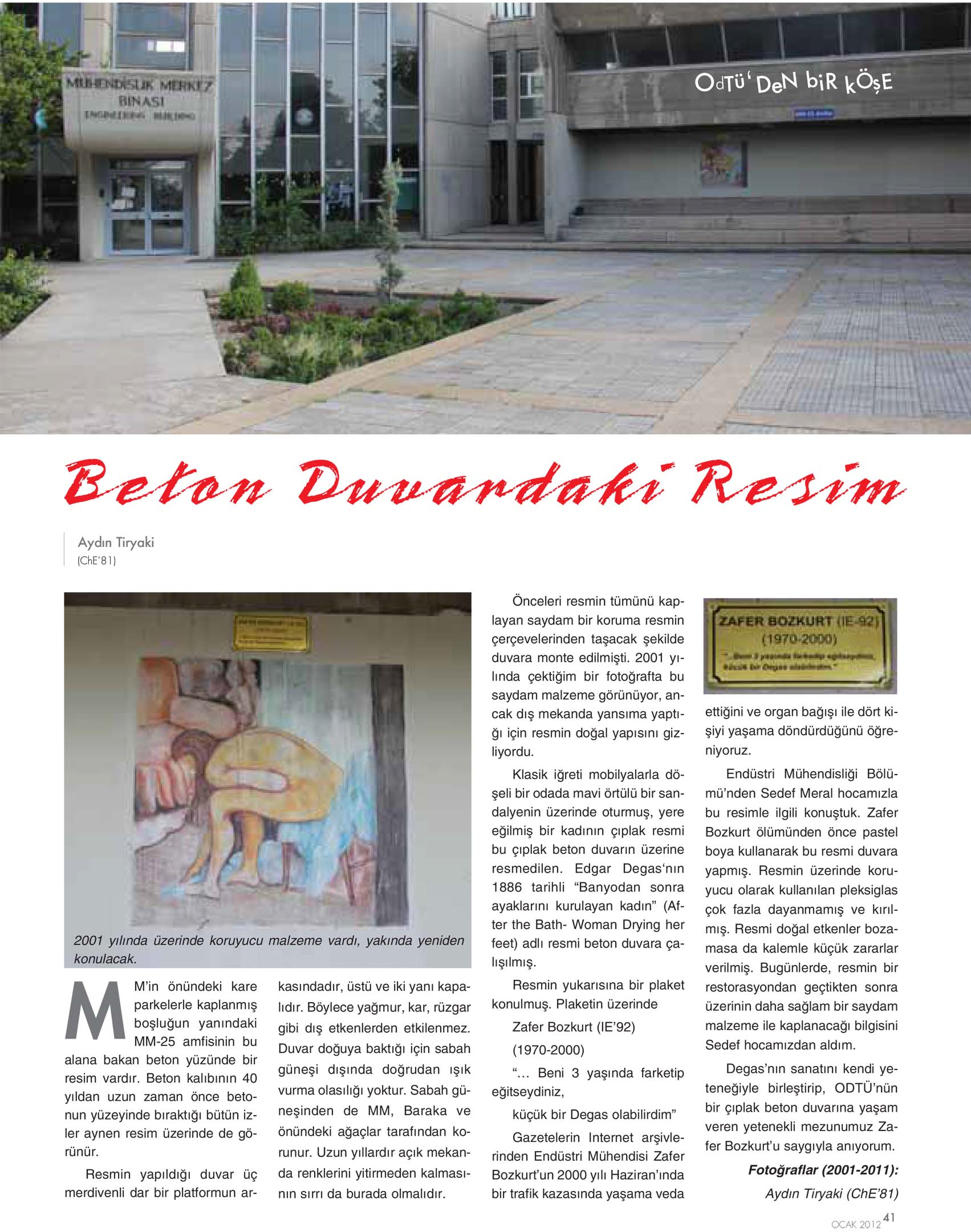 Degas’nın sanatını kendi yeteneğiyle birleştirip, ODTÜ’nün bir çıplak beton duvarına yaşam veren yetenekli mezunumuz Zafer Bozkurt’u saygıyla anıyorum.