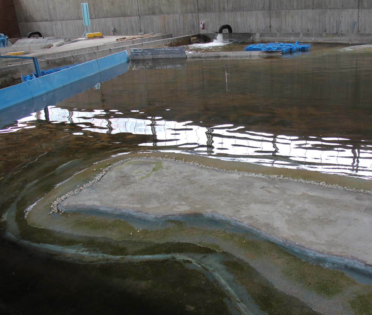 Model havuzların içinde betondan sahiller ve limanlar oluşturulmuş. Hemen yanındaki beton rıhtımdan bakınca açık denizde dalgalar varken limanın içi sütliman görünüyor. Laboratuvar binasının en üstünde dört tarafı bir sıra dolanan camlardan gelen günışığı dalgaların üzerinde denizdeki akşam güneşi gibi yansıyor.
