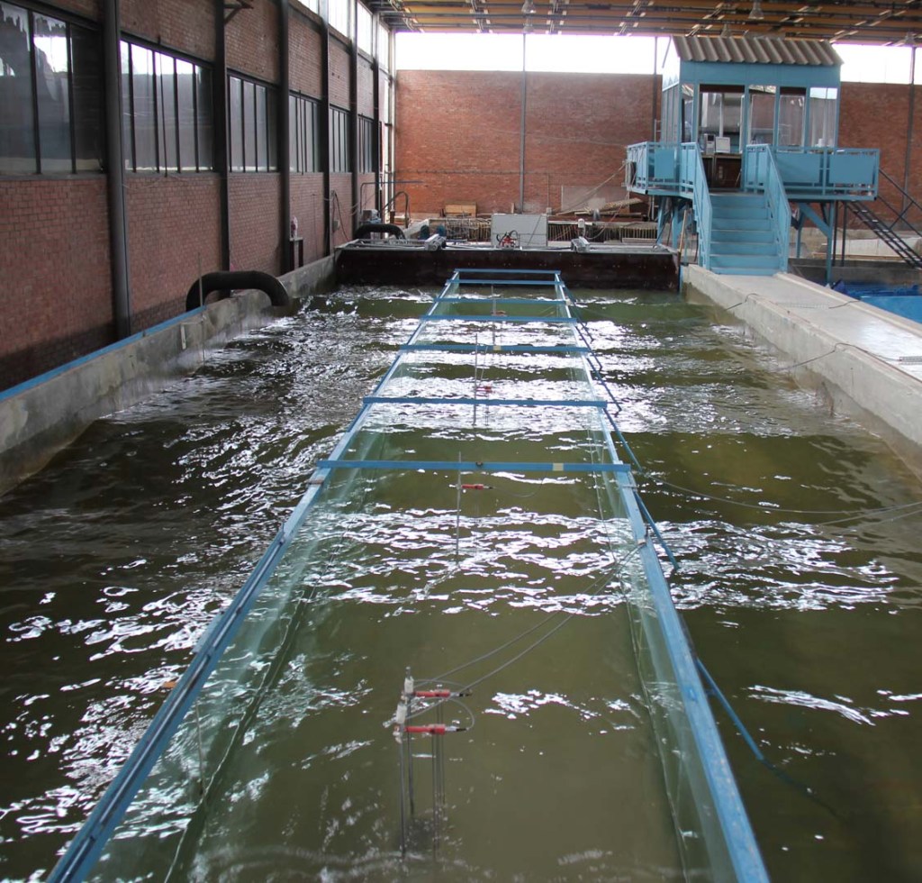 Ofislerin olduğu taraftaki tahta merdivenlerden çıkılan platformdan laboratuvara bakınca ortada bir kontrol odası ve 4 köşede farklı boyutlarda havuzlar görünüyor. Bu havuzlarda dalgalar oluşturmak için kurulmuş sistemler kimi havuzlarda hafif çalkantılar, kimi havuzlarda büyük dalgalar oluşturuyor. Dalgaların üzerinde köpükler olsa, sanki Karadeniz’in hırçın dalgaları gibi görünecek.