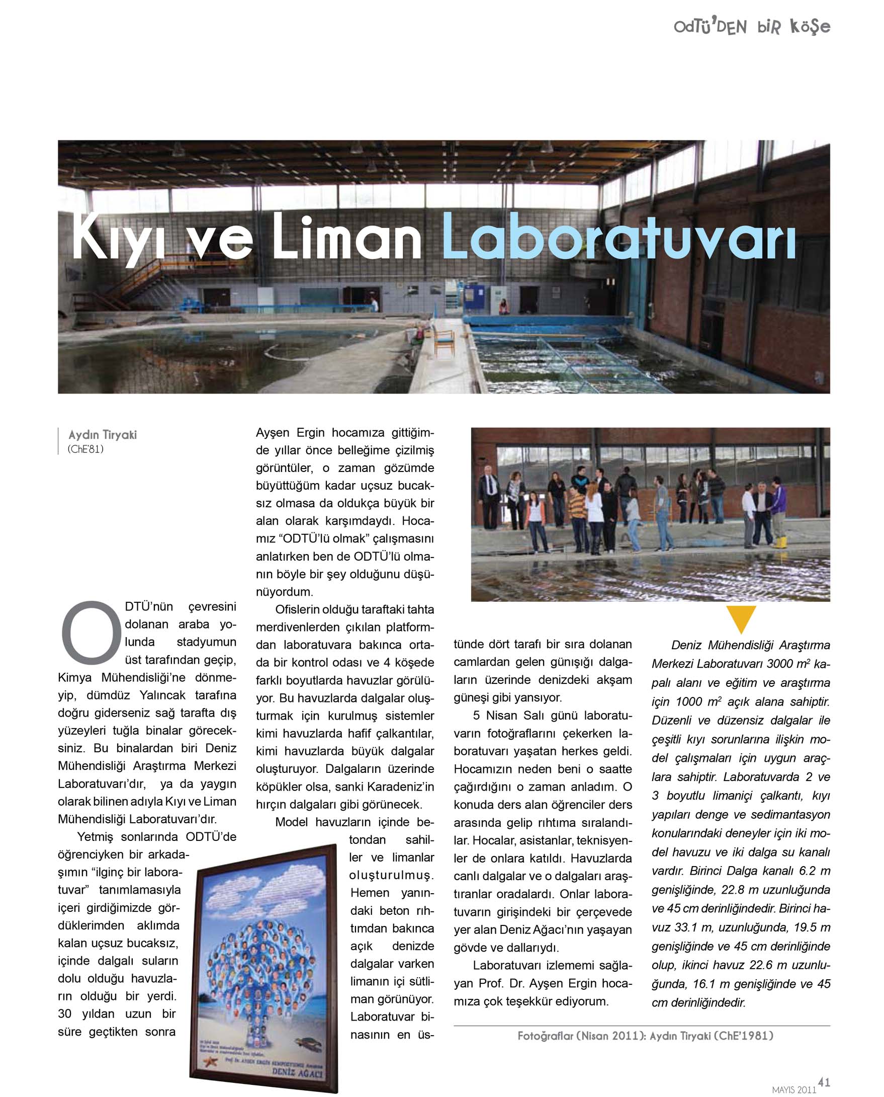 Yetmiş sonlarında ODTÜ’de öğrenciyken bir arkadaşımın “ilginç bir laboratuvar” tanımıyla içeri girdiğimizde gördüklerimden aklımda kalan uçsuz bucaksız, içinde dalgalı suların dolu olduğu havuzların olduğu bir yerdi. 30 yıldan uzun bir süre geçtikten sonra Ayşen Ergin Hocamıza gittiğimde yıllar önce belleğime çizilmiş görüntüler, o zaman gözümde büyüttüğüm kadar uçsuz bucaksız olmasa da oldukça büyük bir alan olarak karşımdaydı. Hocamız “ODTÜlü olmak” çalışmasını anlatırken ben de ODTÜlü olmanın böyle birşey olduğunu düşünüyordum.