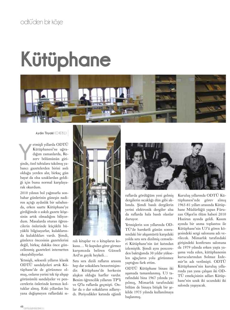 Fotoğraflar: Ekim 2010: Aydın Tiryaki (ChE’81), 60’lar: ODTÜ Kütüphanesi arşivi