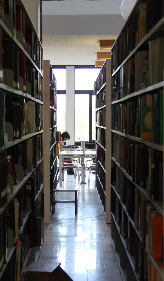 Yetmişli, seksenli yılların klasik ODTÜ sandalyeleri artık Kütüphane’de de görünmez olmuş, onların yerini tek tip ahşap görünümlü sandalyeler ve pencerelerin önlerinde kırmızı koltuklar almış. Eski yıllardan buyana değişmeyen raflardaki sıralı kitaplar ve o kitapların kokusu… Ve kapıdan girer girmek karşımızda beliren Günseli Ard’ın geyik heykeli…