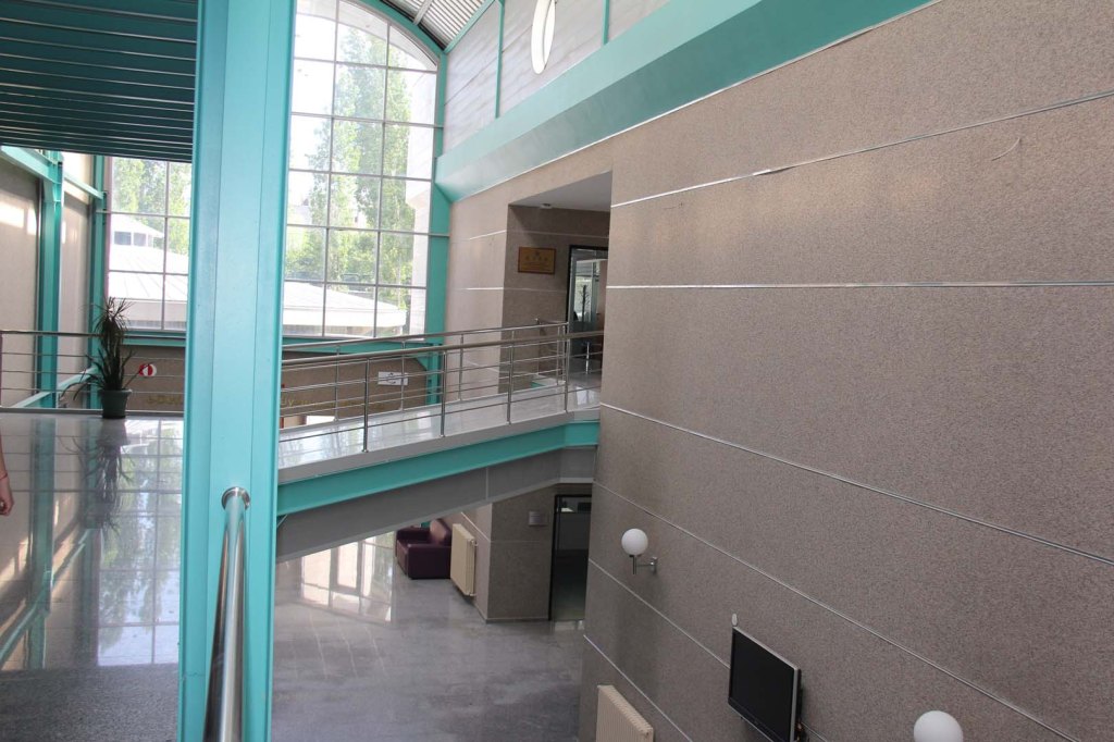 Enformatik Enstitüsünün koridorlarında ve çevresinde dolaştıktan sonra akılda ilk kalan ne kadar sessiz bir ortam olduğu… Ana kapının önündeki geniş alan, kapıdan girer girmez engelliler için yapılmış, binanın orijinal projesinde olduğu anlaşılan rampa, üst katlarda büyük boşluğun çevresindeki yürüme yolları, bu yollara çıkan, diğer ucunda ışık görünen derin koridorları…
