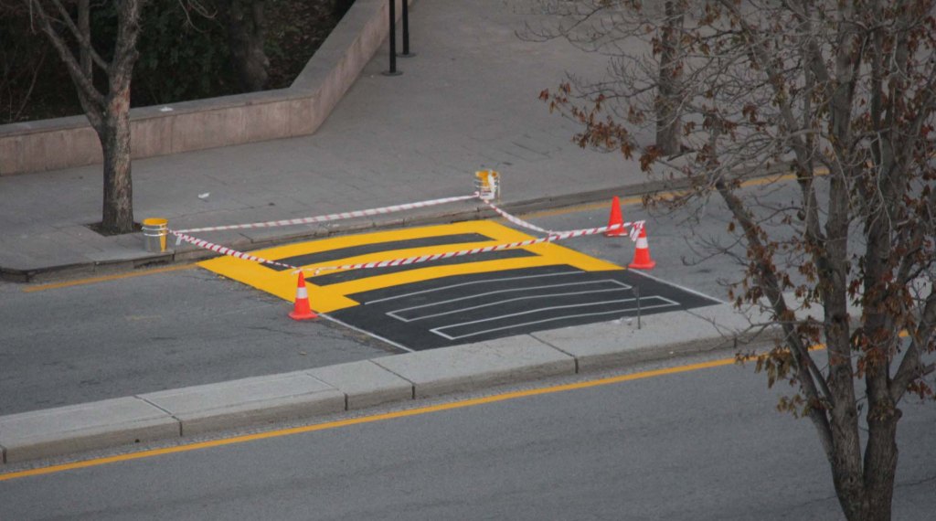 Kasislerin trafikte tehlike oluşturmaması için işaretleme, boyama ve sinyalizasyon çeşitliliği de izledik. Bir süredir beton kasislerde uygulanan sarı boyalar son yapılan asfalt kasislerde de kullanıldı.