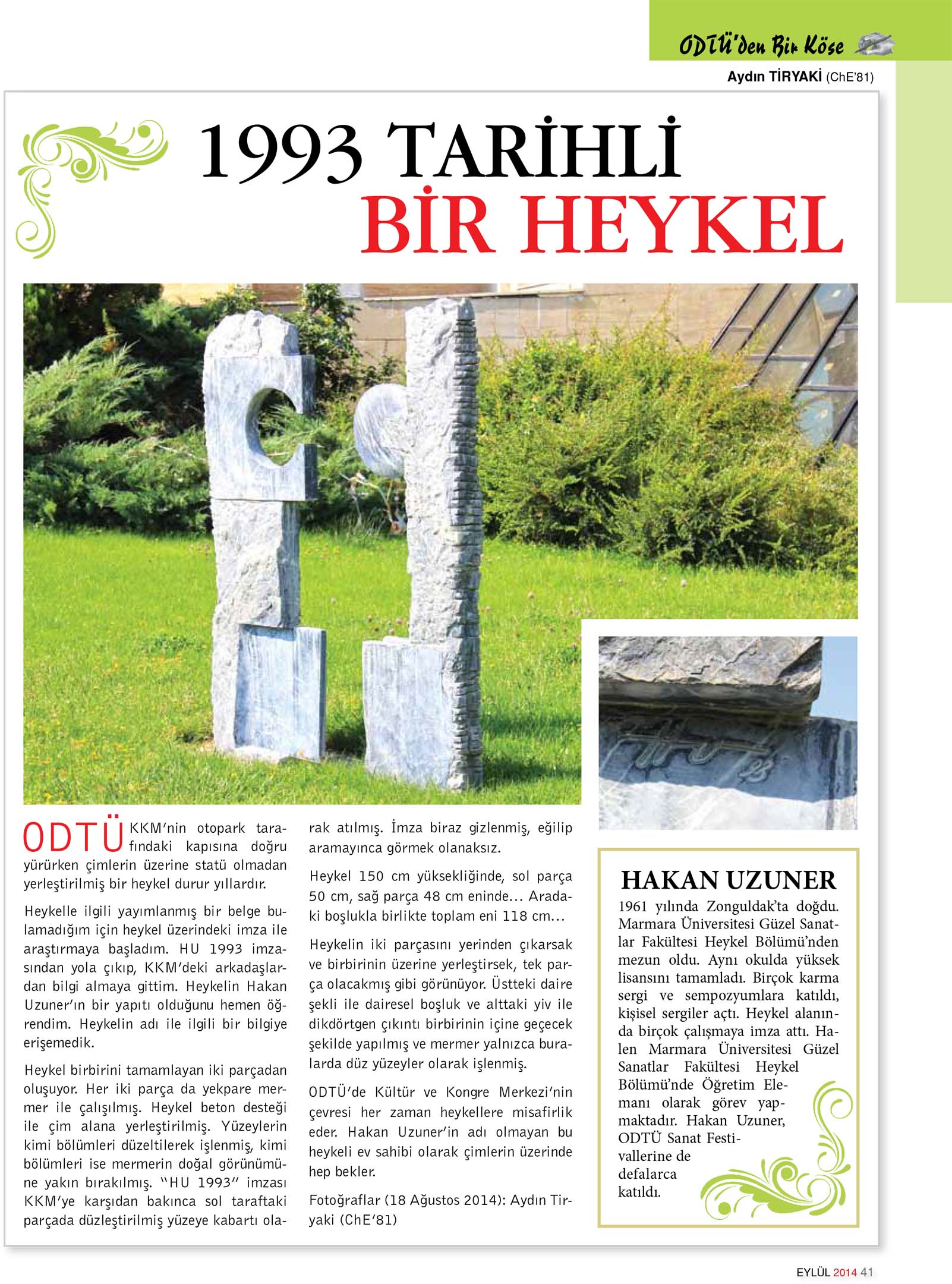 ODTÜ’de Kültür ve Kongre Merkezi’nin çevresi her zaman heykellere misafirlik eder. Hakan Uzuner’in adı olmayan bu heykeli ev sahibi olarak çimlerin üzerinde hep bekler.