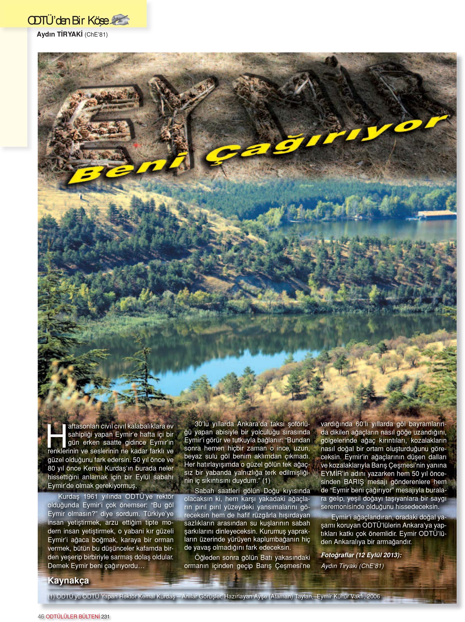 Eymir’i ağaçlandıran, oradaki doğal yaşamı koruyan ODTÜlülerin Ankara’ya yaptıkları katkı çok önemlidir. Eymir ODTÜlüden Ankaralıya bir armağandır.