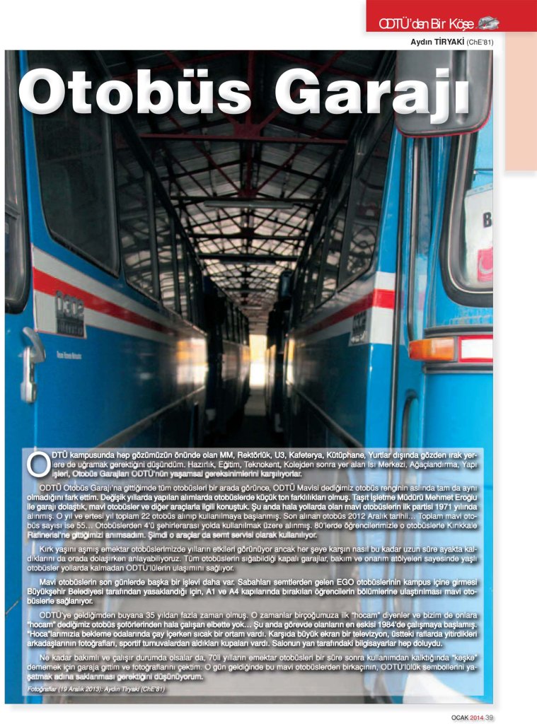 Ne kadar bakımlı ve çalışır durumda olsalar da, 70li yılların emektar otobüsleri bir süre sonra kullanımdan kalktığında “keşke” dememek için garaja gittim ve fotoğraflarını çektim. O gün geldiğinde bu mavi otobüslerden birkaçının, ODTÜ’lülük sembollerini yaşatmak adına saklanması gerektiğini düşünüyorum.