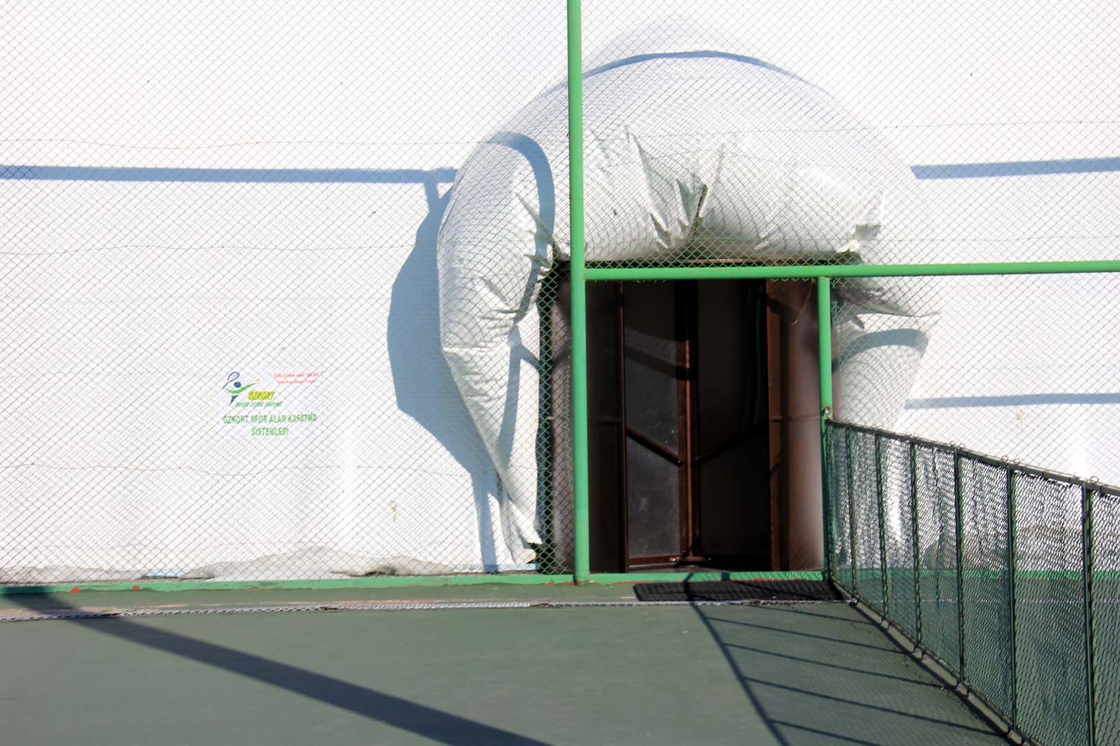 2012’de ODTÜ Spor Kulübü’nün 50. yılı nedeniyle düzenlenen etkinlik için Faruk Bozoğlu hocamızla bir sunum üzerinde çalışırken tenis kortlarının görünümünü ve işlevini değiştiren bu yenilikle ilgili konuştuk. İki kortun üzerini tamamen kapatınca. kış koşullarında tenis oynanabilecek kort sayısı 4’e çıkmış oluyor. Yaklaşık birbuçuk ton ağırlığındaki kapatma malzemesi parçalar yapıştırılarak oluşturulmuş. Yaz geldiğinde kaldırmak yerine gölge işlevi için kullanılmaya devam edilmesi planlanıyor.