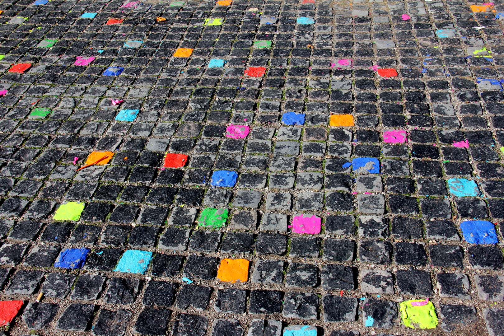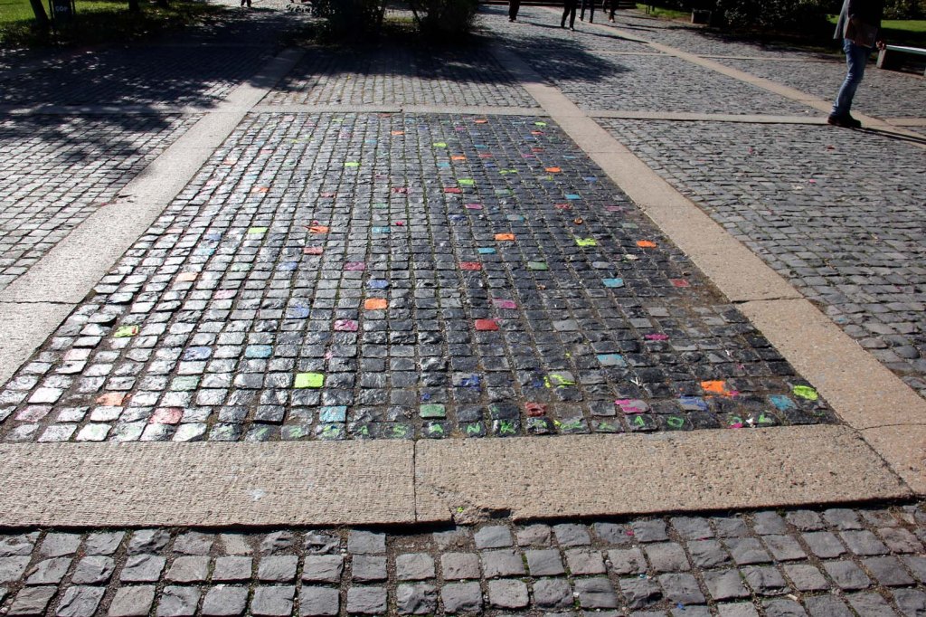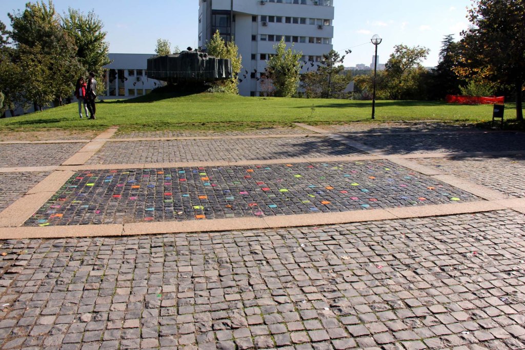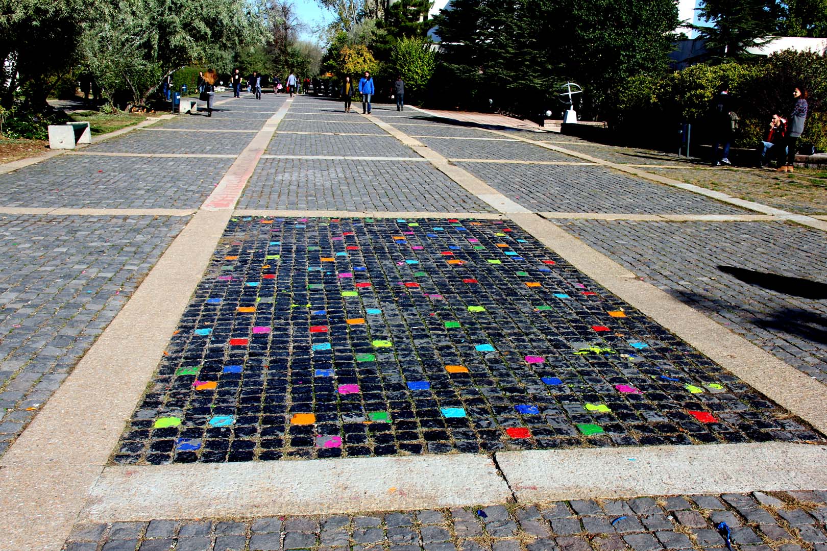 ODTÜ Allesi paket taşları kaplıdır. Bu taşlar yaklaşık 25-30 taş eninde 50-60 taş boyunda dikdörtgen alanların içine düzgün bir şekilde yerleştirilmiştir. Yani her alanda binden fazla taş vardır. İdari’den Bilgi İşlem’e kadar bu alanların yüzlercesi ardarda sıralanır. İşte o diktörtgen alanlardan yalnızca biri seçilmiş ve boyanmış.