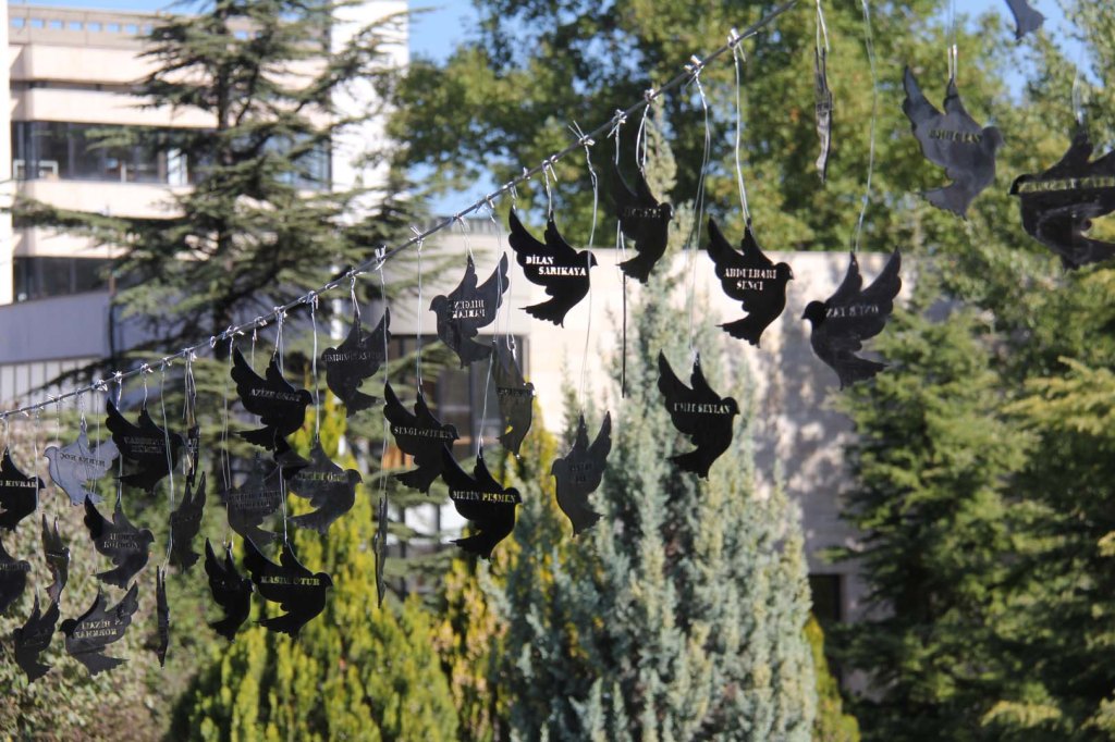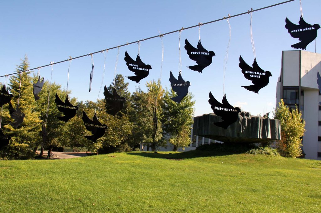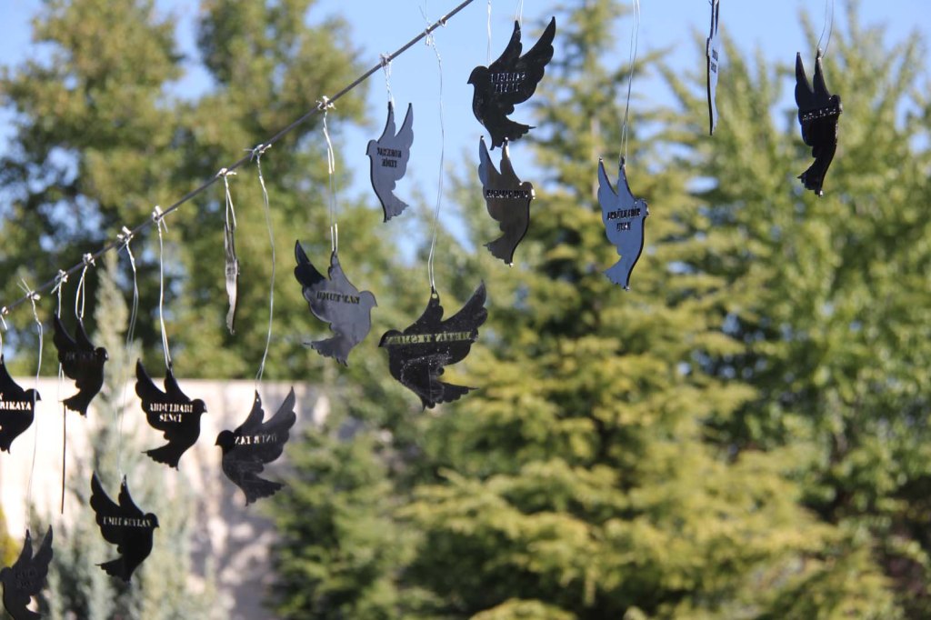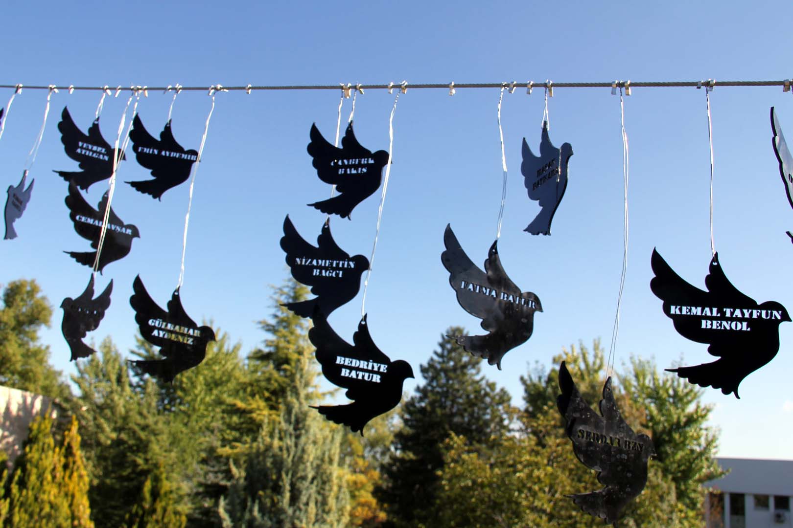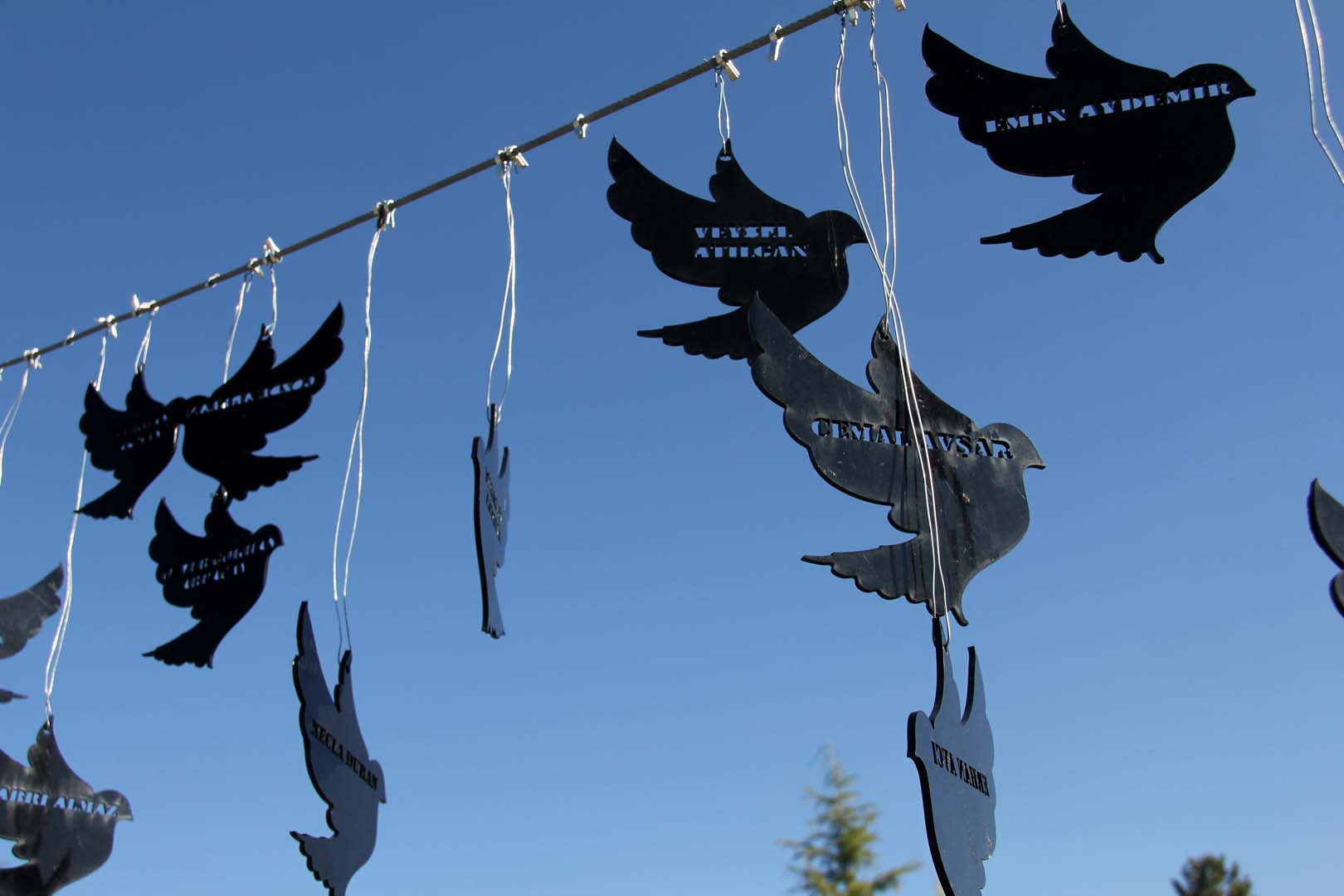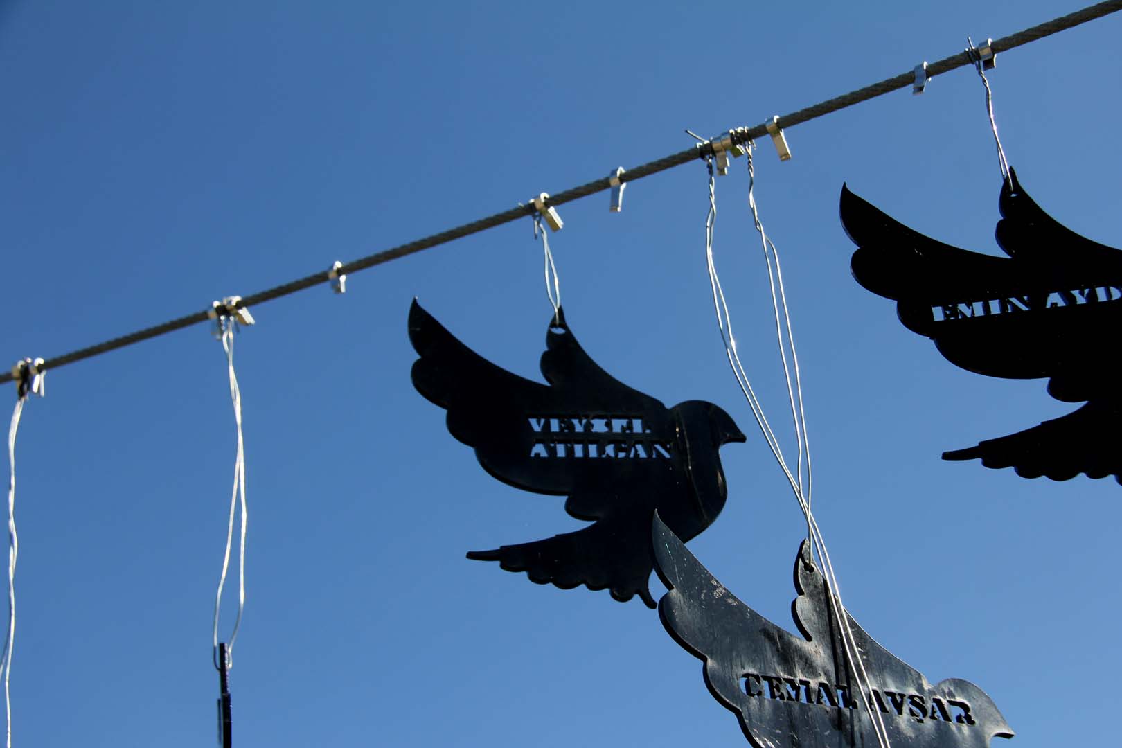 İki direk arasına gerilmiş tele asılmış 102 kara kuşun her birinin üzerinde yitirilmiş bir canın adı yazılıydı. Bir ya da iki ad ve bir soyad kuşu delip geçen… 102 kara kuşun üzerine 102 annenin, 102 babanın, yüzlerce kardeşin, evladın, eşin, sevgilinin, halanın, teyzenin, amcanın, dayının, anneannenin, babaannenin, dedenin, binlerce arkadaşın gözyaşları sinmişti.