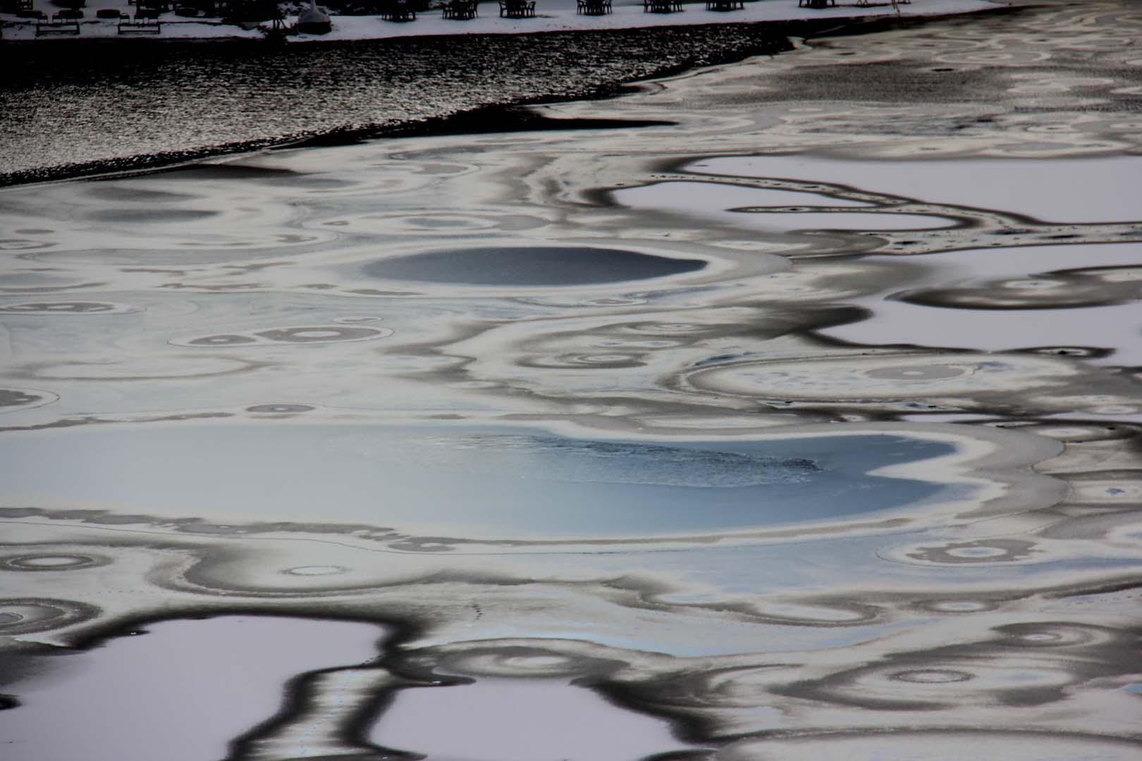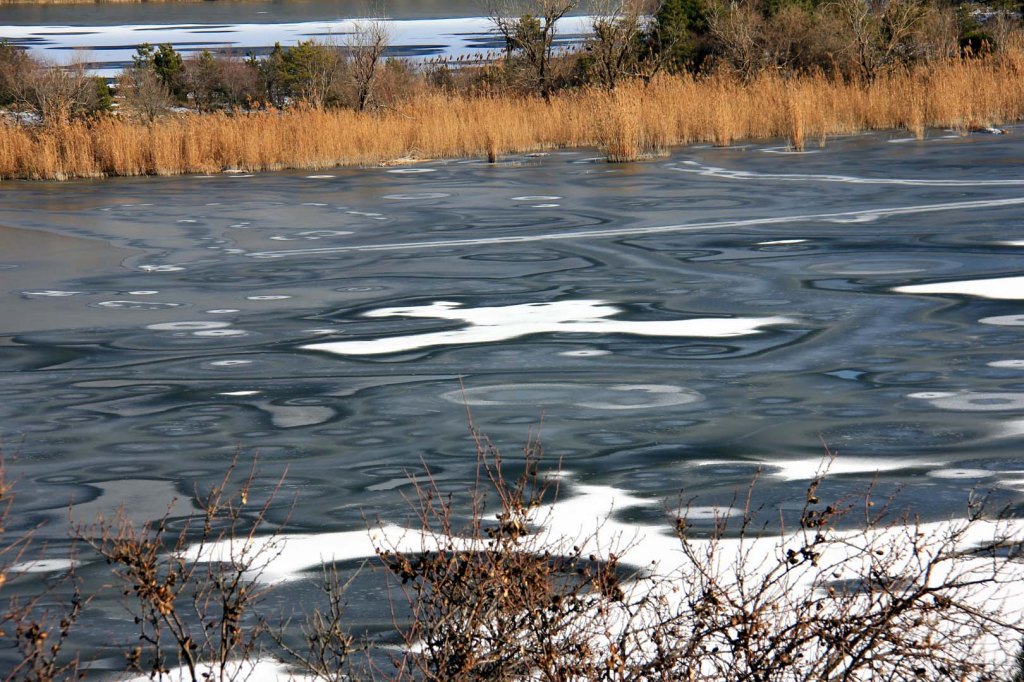 15-17 Aralık 2016’da ODTÜ’de düzenlenen Eymir Sempozyumunun son günü Eymir gezisi düzenlenmişti. Buz gibi bir havaydı. Bağevinden çıkıp, yokuşu tırmanıp göle hakim bir tepede toplanmıştık. Hocalarımız Meryem Beklioğlu ve Çağatay Keskinok’un çevresinde toplanmış gölle ilgili bilgiler alıyor ve anılar dinliyorduk. Gölün kimi bölümleri donmuştu. Donmamış yerlerde suyun üzerinde deniz kuşları dolaşıyor ve sesleriyle biz buradayız diyorlardı. Gölün üzeri donarken, bir noktadan başlayıp dışarıya doğru donmaya devam ettiği için birbirine bitişen daireler oluşturmuştu. Daireleri oluşturan halkalarda mavinin ve yeşilin değişik tonları görünüyordu.