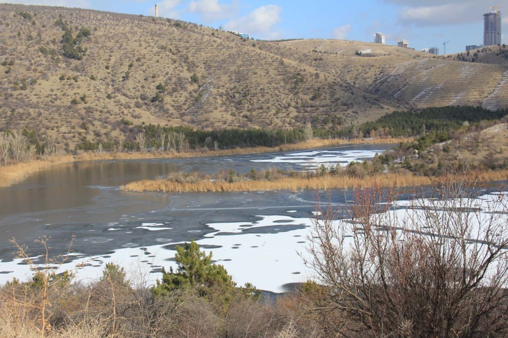 Ankara’nın çok soğuk kışlarında gölleri donar. Diğer üç mevsimde cıvıl cıvıl olan Eymir derin bir sessizliğe bürünür. Sazlıkların arasına saklanmış su kuşlarının yaşam alanları daraldığı için çok fazla ortalarda görünmezler.