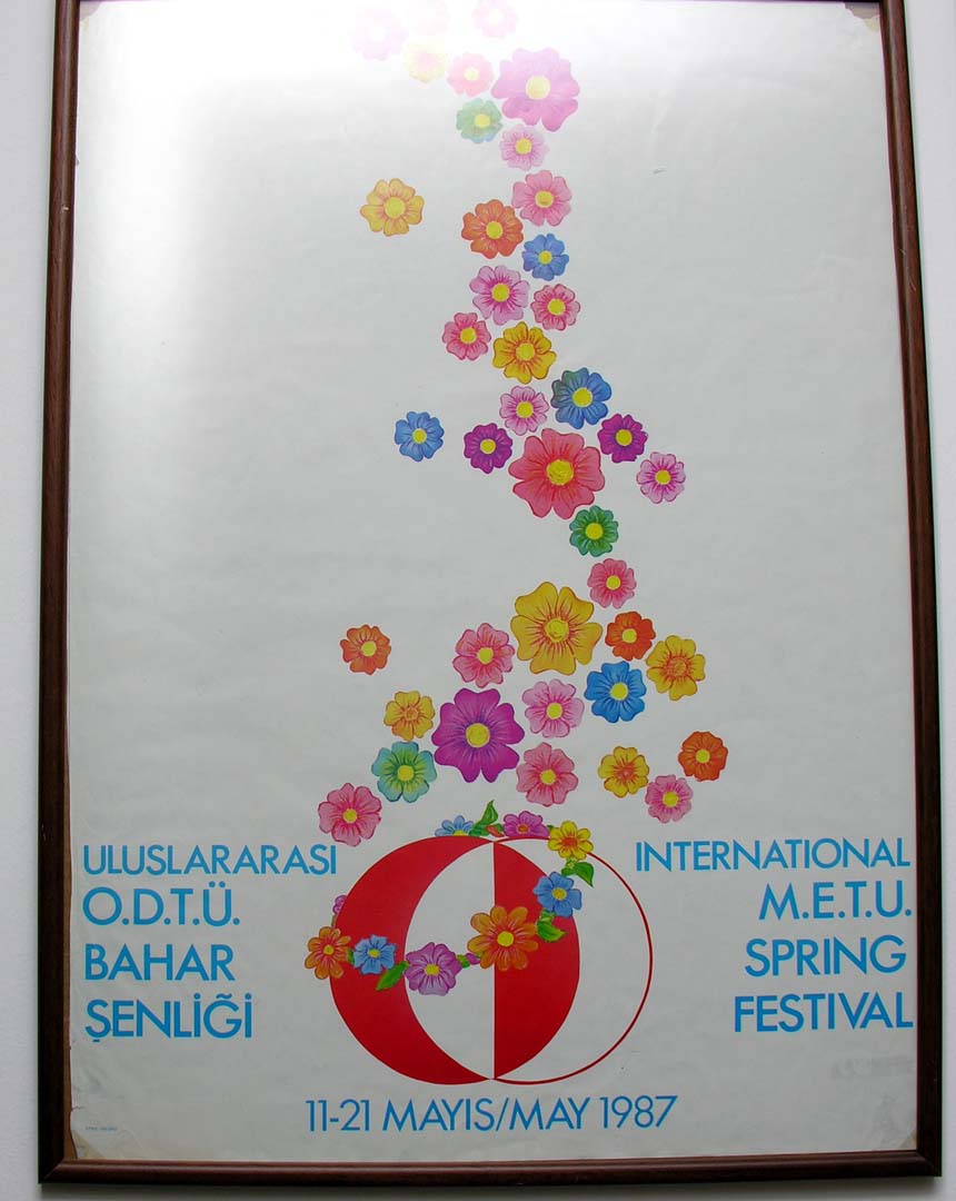 Her Bahar Şenliği’nden önce Şenlik afişleri asıldı. İlk afiş ODTÜ logosunu saran rengarenk çiçeklerden oluştu. Üzerine “Uluslararası ODTÜ Bahar Şenliği – International METU Spring Festival 11-21 Mayıs/May 1987” yazıldı. Sonraki afişlerde de çiçekler ve bahar vurgusu gözlendi.