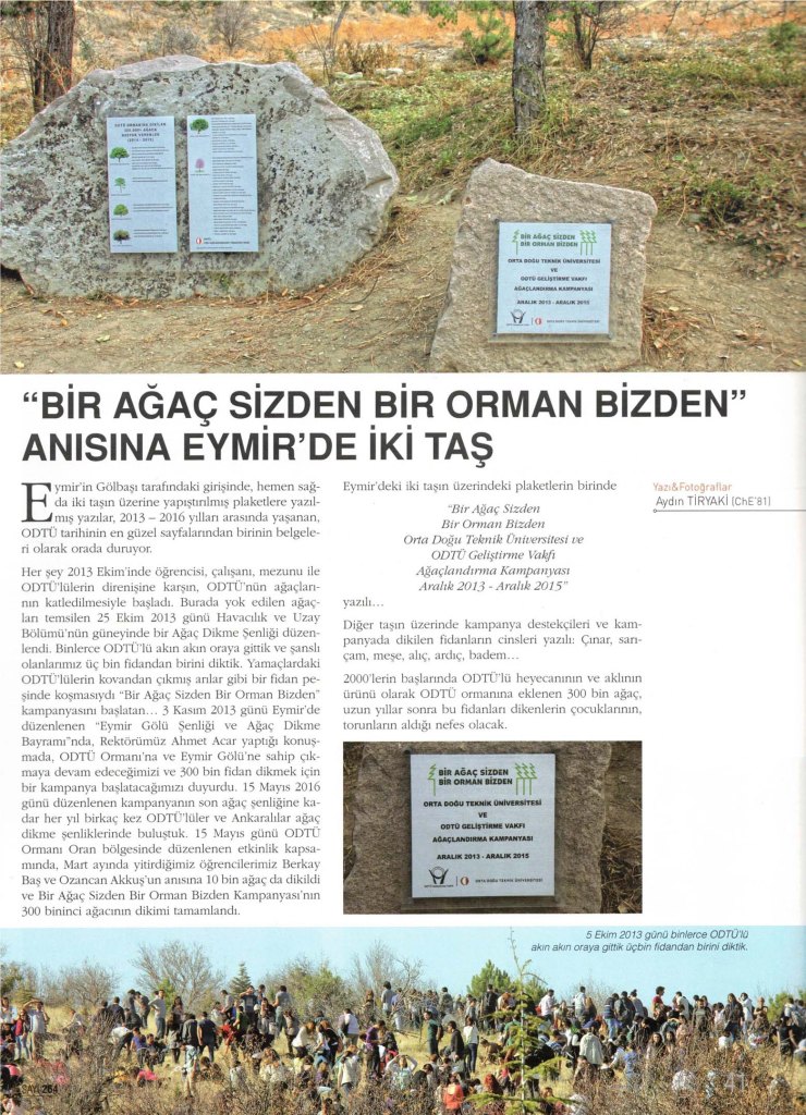 Eymir’in Gölbaşı tarafındaki girişinde, hemen sağda iki taşın üzerine yapıştırılmış plaketlere yazılmış yazılar, 2013-2016 yılları arasında yaşanan, ODTÜ tarihinin en güzel sayfalarından birinin belgeleri olarak orada duruyor.