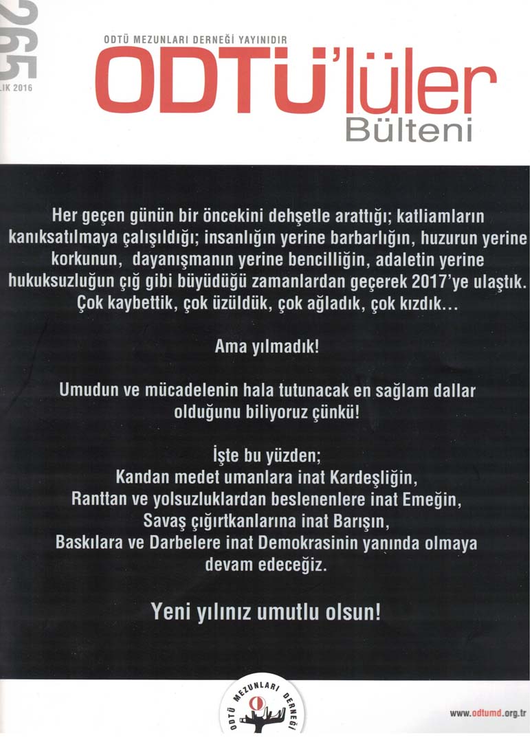 ODTÜ’den Bir Köşe – ODTÜlüler Bülteni (Aralık 2016)