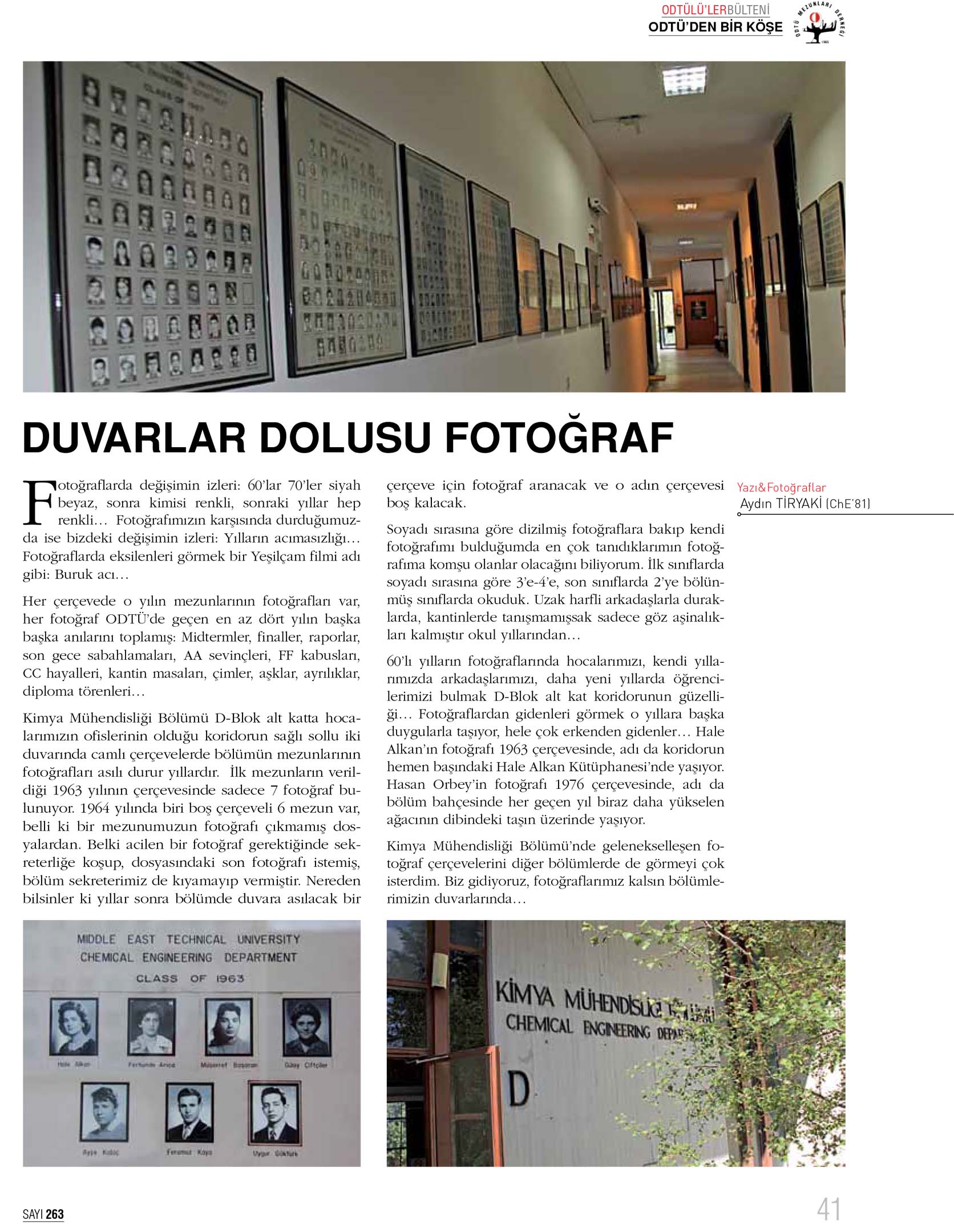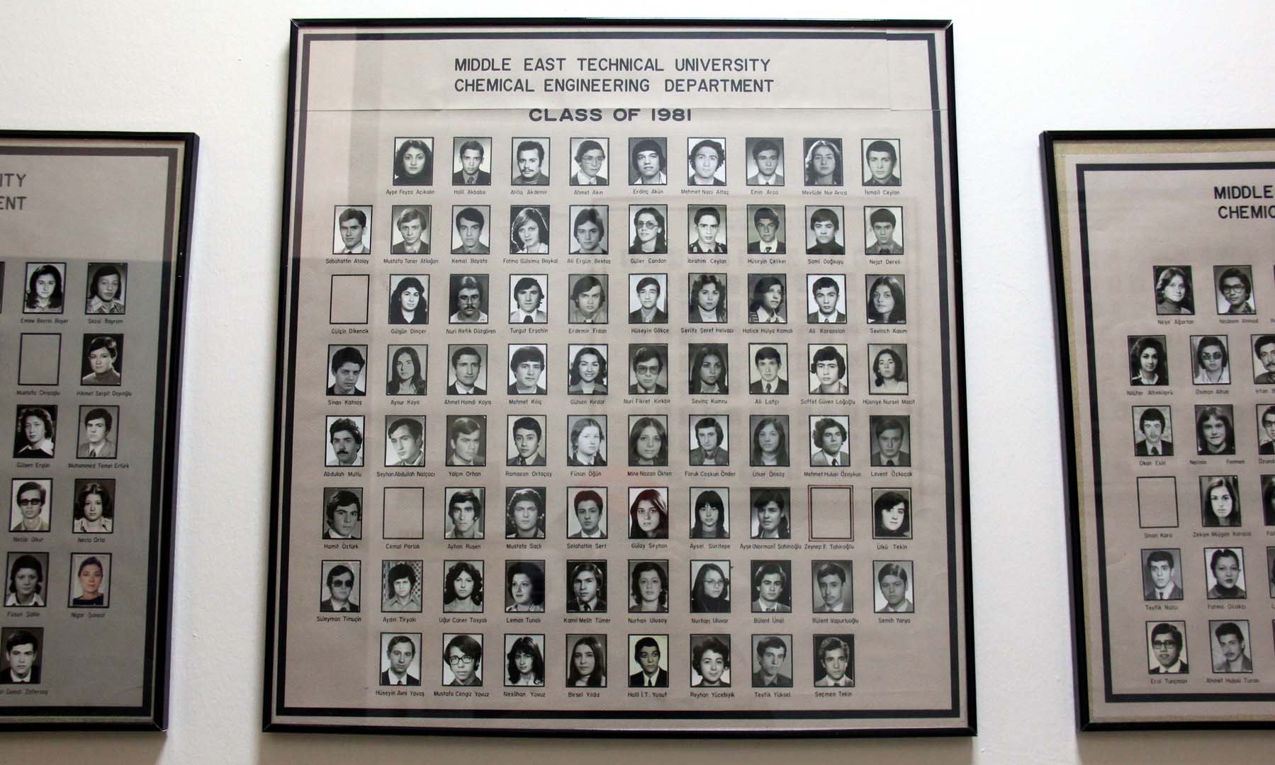 Kimya Mühendisliği Bölümü D-Blok alt katta hocalarımızın ofislerinin olduğu koridorun sağlı sollu iki duvarında camlı çerçevelerde bölümün mezunlarının fotoğrafları asılı durur yıllardır. İlk mezunların verildiği 1963 yılının çerçevesinde sadece 7 fotoğraf bulunuyor. 1964 yılında biri boş çerçeveli 6 mezun var, belli ki bir mezunumuzun fotoğrafı çıkmamış dosyalardan. Belki acilen bir fotoğraf gerektiğinde sekreterliğe koşup, dosyasındaki son fotoğrafı istemiş, bölüm sekreterimiz de kıyamayıp vermiştir. Nereden bilsinler ki yıllar sonra bölümde duvara asılacak bir çerçeve için fotoğraf aranacak ve o adın çerçevesi boş kalacak.