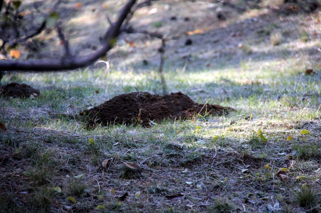 Kafeterya ile alle arasındaki çimlerde düz bir çizgi üzerinde köstebek yuvalarından dışarıya çıkartılmış toprak yığınları ne kadar düzenli çalıştıklarının göstergesidir. Düz çizgi bozulmuşsa bir açıyla yeni bir düz çizgi başlamıştır, demek ki burada önlerine bir engel çıkmış ancak engel onları yıldırmamış ve başka yöne doğru yönlendirmiş. İnşaat Mühendisliği binalarının yanındaki ağaçlar arasındaki köstebek yuvalarının zigzaglar çizdiğini görürüz, bundan da ağaçların ve köklerinin oradaki köstebeklerin işini zorlaştırdığını anlarız.
