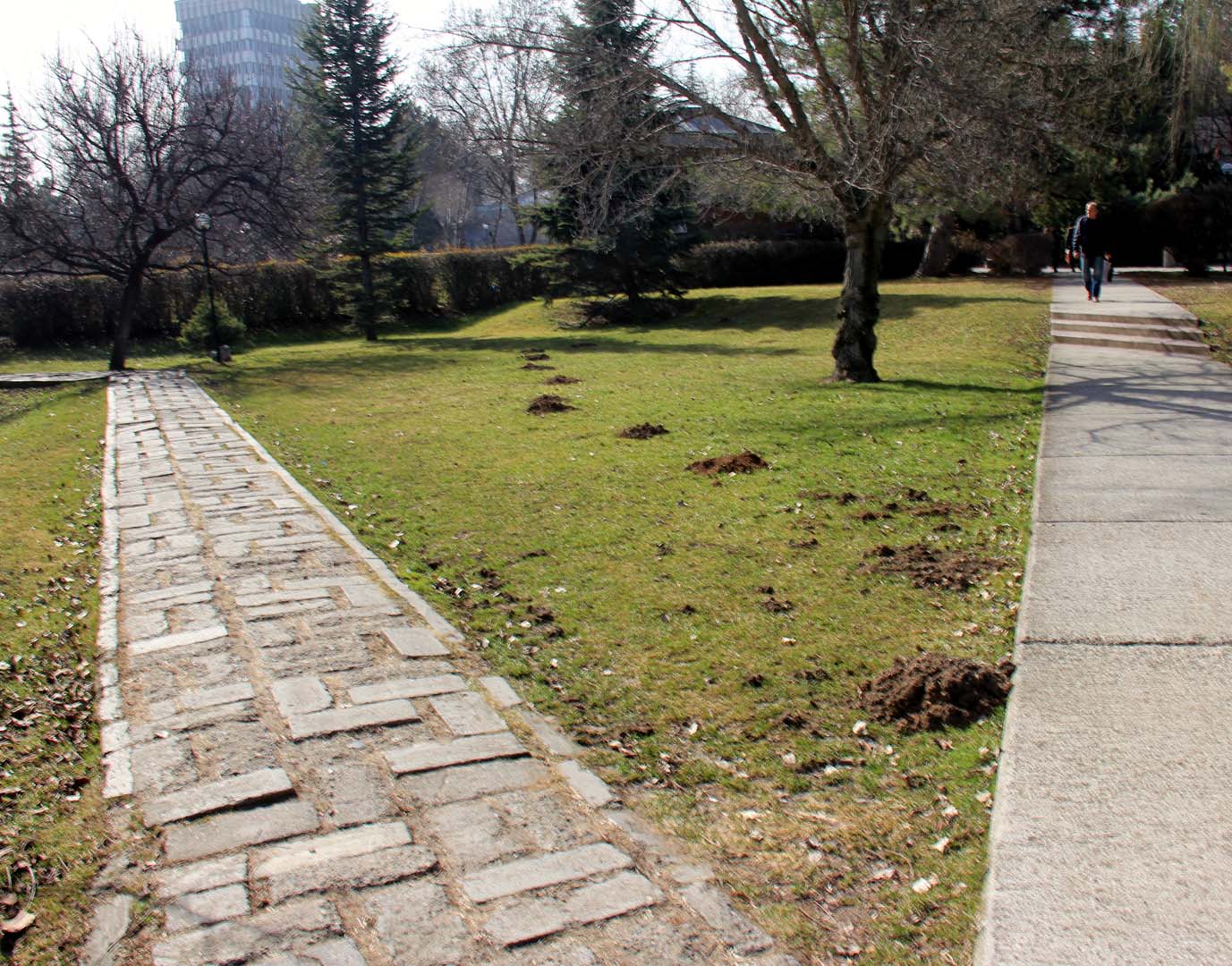 Kafeterya ile alle arasındaki çimlerde düz bir çizgi üzerinde köstebek yuvalarından dışarıya çıkartılmış toprak yığınları ne kadar düzenli çalıştıklarının göstergesidir. Düz çizgi bozulmuşsa bir açıyla yeni bir düz çizgi başlamıştır, demek ki burada önlerine bir engel çıkmış ancak engel onları yıldırmamış ve başka yöne doğru yönlendirmiş. İnşaat Mühendisliği binalarının yanındaki ağaçlar arasındaki köstebek yuvalarının zigzaglar çizdiğini görürüz, bundan da ağaçların ve köklerinin oradaki köstebeklerin işini zorlaştırdığını anlarız.