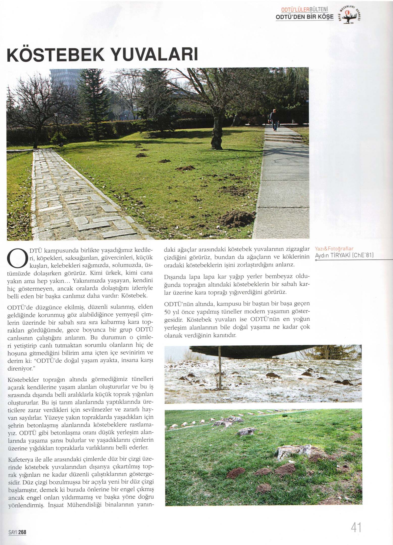 ODTÜ’de düzgünce ekilmiş, düzenli sulanmış, elden geldiğinde korunmuş göz alabildiğince yemyeşil çimlerin üzerinde bir sabah sıra sıra kabarmış kara toprakları gördüğümde, gece boyunca bir grup ODTÜ canlısının çalıştığını anlarım. Bu durumun o çimleri yetiştirip canlı tutmaktan sorumlu olanların hiç de hoşuna gitmediğini bilirim ama içten içe sevinirim ve derim ki: “ODTÜ’de doğal yaşam ayakta, insana karşı direniyor.”