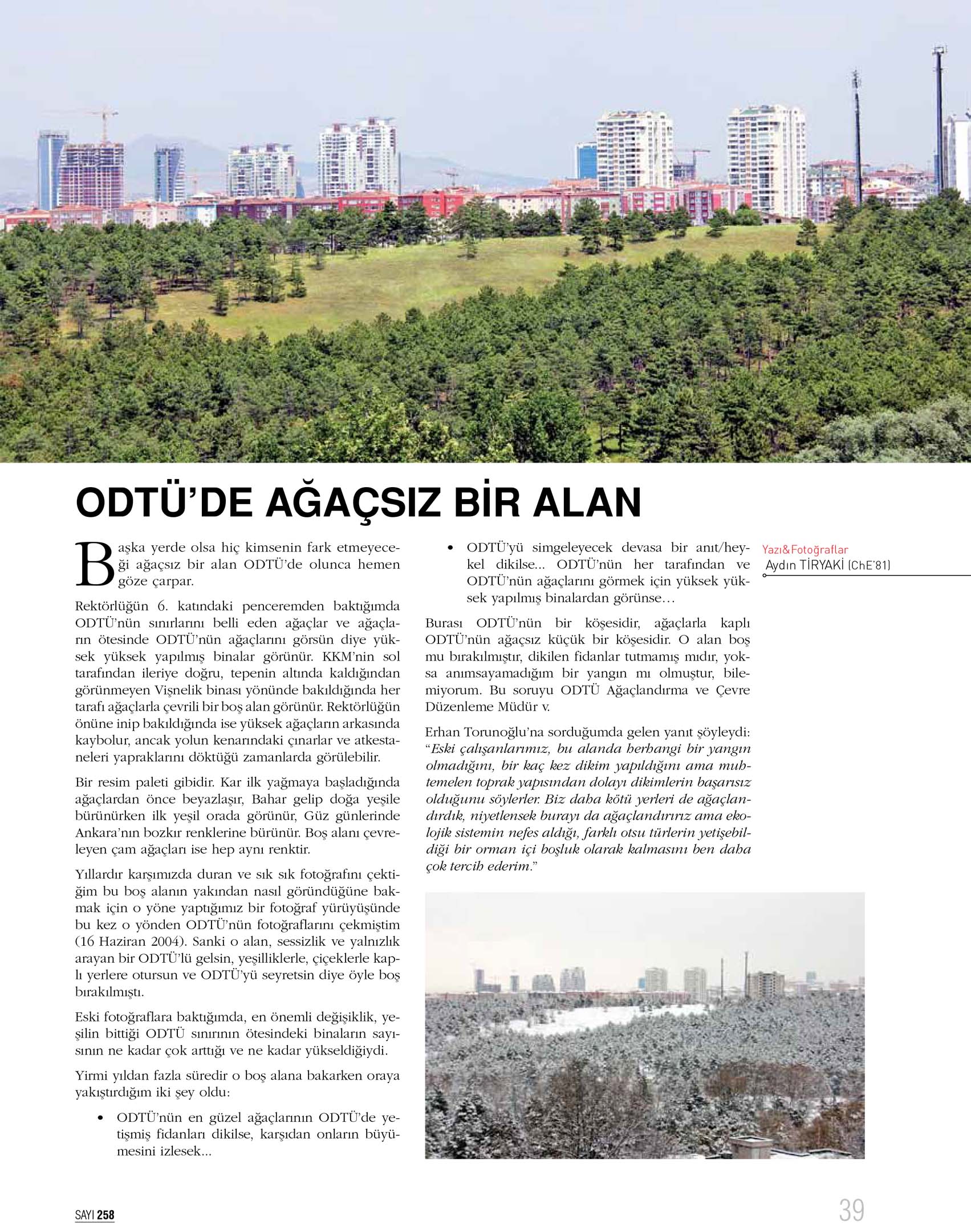 Burası ODTÜ’nün bir köşesidir, ağaçlarla kaplı ODTÜ’nün ağaçsız küçük bir köşesidir. O alan boş mu bırakılmıştır, dikilen fidanlar tutmamış mıdır, yoksa anımsayamadığım bir yangın mı olmuştur, bilemiyorum. Bu soruyu ODTÜ Ağaçlandırma ve Çevre Düzenleme Müdür v.