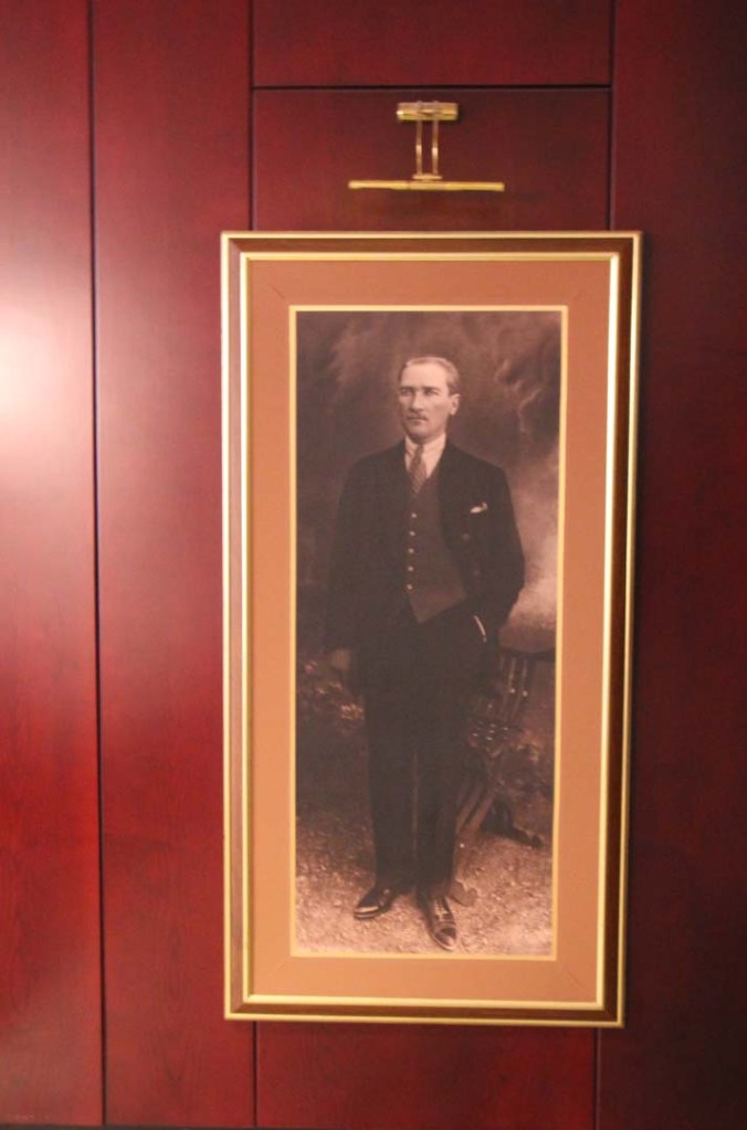 Rektörlük koridoruna açılan kapının hemen solunda Atatürk’ün gerçek boyutta, ayakta bir fotoğrafı karşılar.