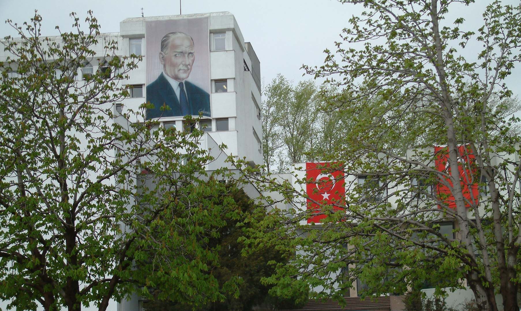 23 Nisanlarda, 19 Mayıslarda, 30 Ağustoslarda, 13 Ekimlerde, 29 Ekimlerde, 10 Kasımlarda, 27 Aralıklarda Rektörlük binasının çatısından üzerinde Atatürk’ün resmi bulunan büyük bir bez poster asılır. 2000 sonrası arşiv fotoğraflarından izlediğimizde bu posterin 2008 ve 2016’da değiştirildiğini görürüz. 2008’e kadar ve 2016’ya kadar kullanılan posterler Cemil Karababa imzalıyken 2016’dan itibaren kullanılmakta olan poster bir fotoğraftan hazırlanmış. Binanın Rektörlük ofislerinin olduğu balkonlara üç Türk Bayrağı asılırdı. 2016’dan sonra ortaya Atatürk Posteri iki yana bayraklar asılmaya başlandı.