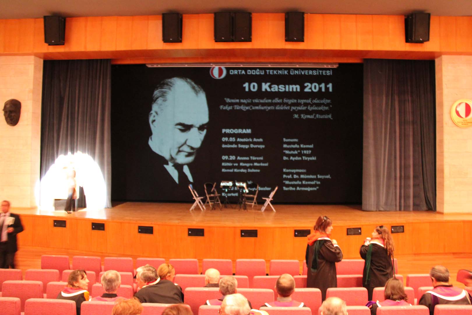 Her 10 Kasım için farklı bir Atatürk fotoğrafıyla hazırlanmış, anma programının da yeraldığı bir afiş ODTÜ’nün bütün binalarında, otobüslerinin arka camlarında asılır. Afişteki fotoğrafın aynısı o gün kalplerin üzerine iğnelenmiştir, Atatürk Anıtı’nın önünde başlayan ve KKM Kemal Kurdaş Salonunda süren anma programında…