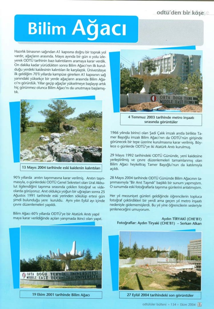 Her sayı öncesi, yazıyı beklediklerini haber veren e-postayı ya da telefonu aldığımda, ODTÜ’den hangi köşeyi yazsam diye düşünürken köşeler bitmiş gibi gelse de, son anda mutlaka bir köşe bulup yazdım. “Hangi köşe” arayışlarımı sesli düşündüğüm zamanlarda köşe önerisi yapan arkadaşlar da hep yardımcı oldu. Veda yazısını yazarken hala yazılmamış çok köşe olduğunu biliyorum: Müze, Bilim ve Teknoloji Müzesi, Isı Merkezi, ODTÜ Tünelleri… O köşeleri hep ertelemiştim, çok özel fotoğraflar çekeyim, bilgi toplayayım diye…