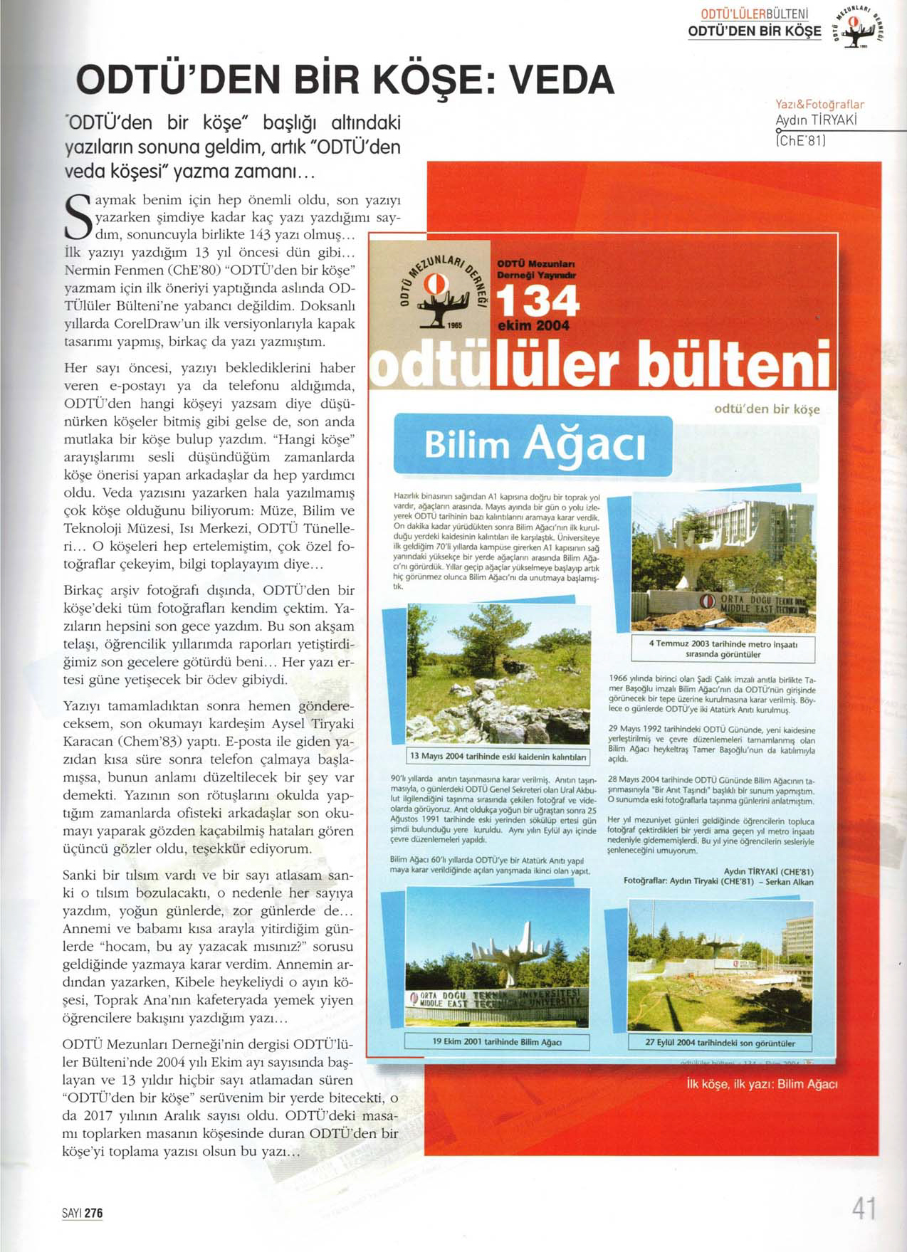 Saymak benim için hep önemli oldu, son yazıyı yazarken şimdiye kadar kaç yazı yazdığımı saydım, sonuncuyla birlikte 143 yazı olmuş… İlk yazıyı yazdığım 13 yıl öncesi dün gibi… Nermin Fenmen (ChE’80) “ODTÜ’den bir köşe” yazmam için ilk öneriyi yaptığında aslında ODTÜlüler Bülteni’ne yabancı değildim. Doksanlı yıllarda CorelDraw’un ilk versiyonlarıyla kapak tasarımı yapmış, birkaç da yazı yazmıştım.