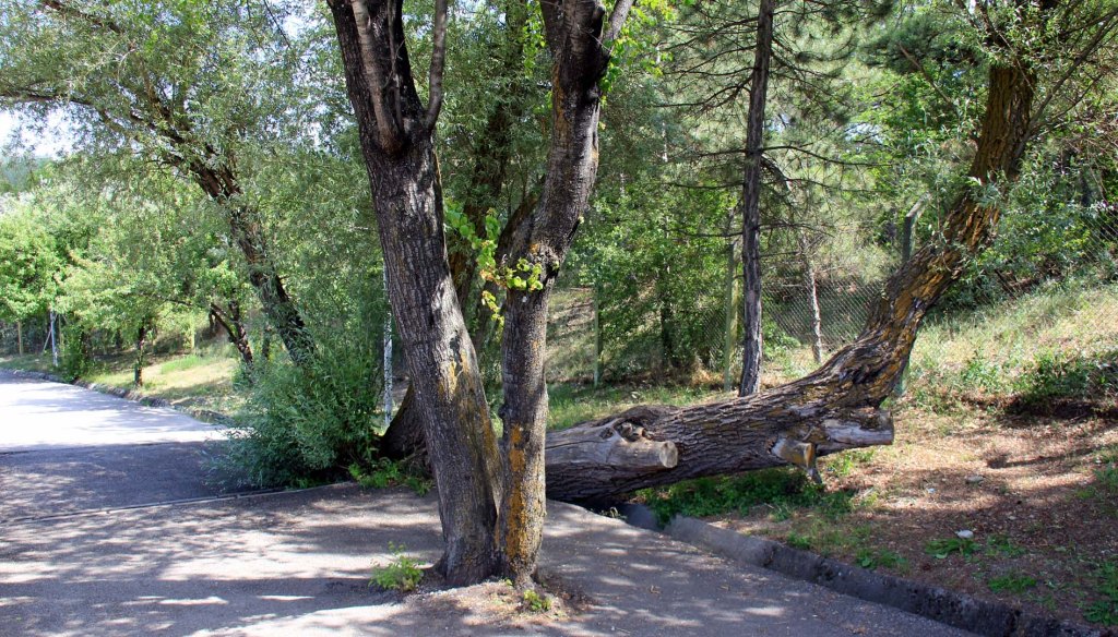Kafeteryadan çıkıp yaya yolundan Devrim Stadyumunun yanından yurtlara giderken stadyumun sol tarafındaki yoldan tribünlere doğru tırmanınca gövdesi tamamen asfalt içinde kalmış bir ağacın dalı neredeyse yere paralel bir şekilde duruyor. ODTÜ’de eğri büğrü ağaçların belki de en görkemlilerinden biri… Biraz daha yukarıya yürüyünce üçüz bir çam ağacı yolun hemen yanında göze çarpıyor.