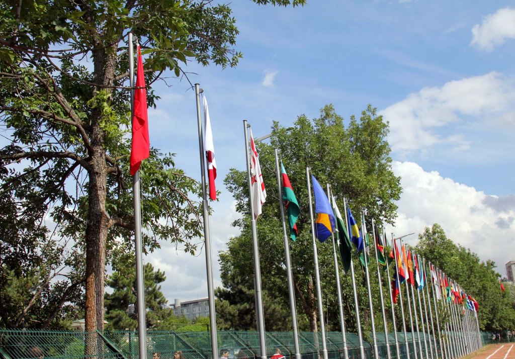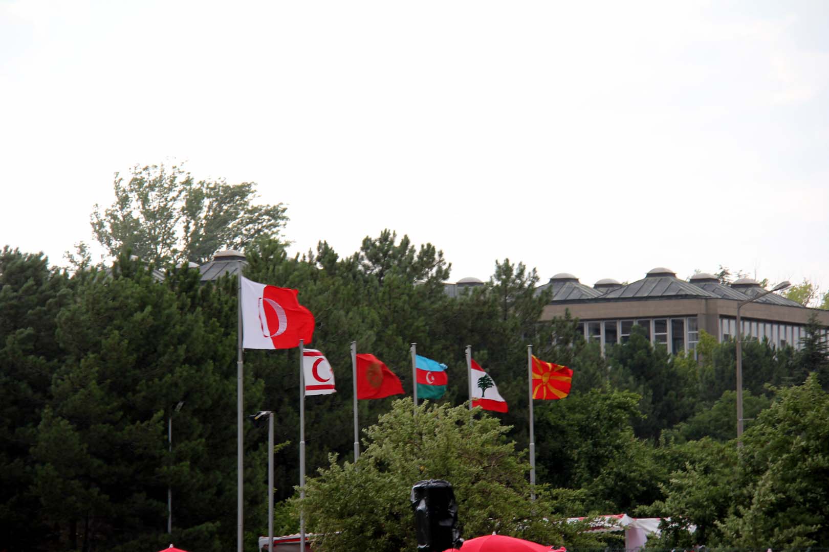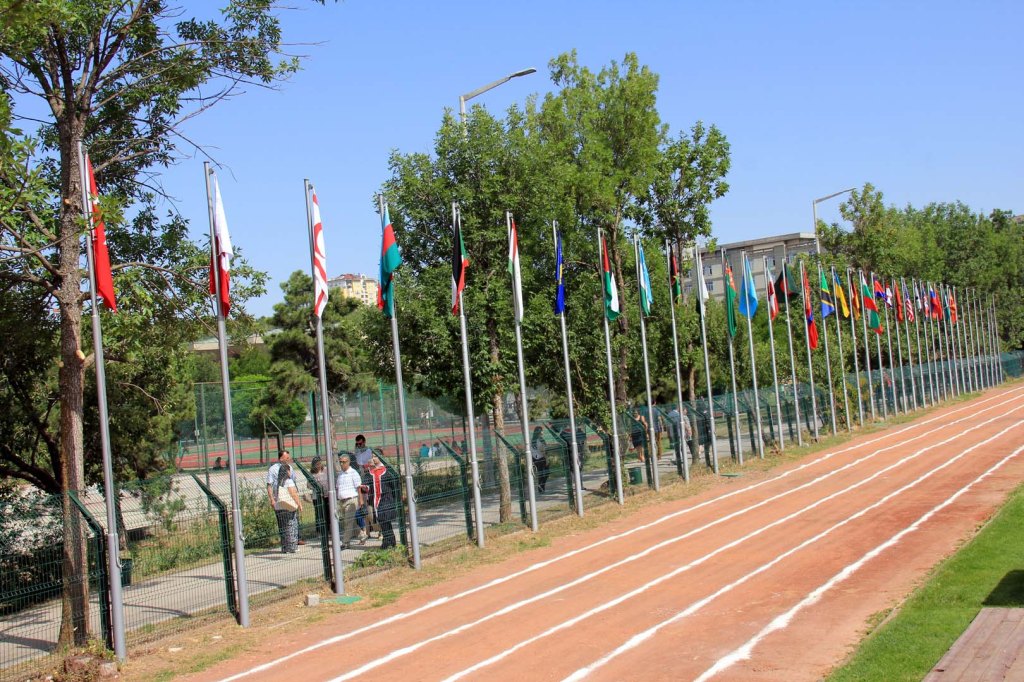 Diploma töreni için Devrim Stadyumu hazırlanırken, tribünlerin karşısındaki sıra sıra bayrak direklerine mezunların ülkelerinin bayrakları asılır, ay yıldızlı bayrağımızın yanına. Diploma törenlerinin vazgeçilmez parçasıdır o gün diploma alan öğrencilerimizin ülkelerinin bayrakları…