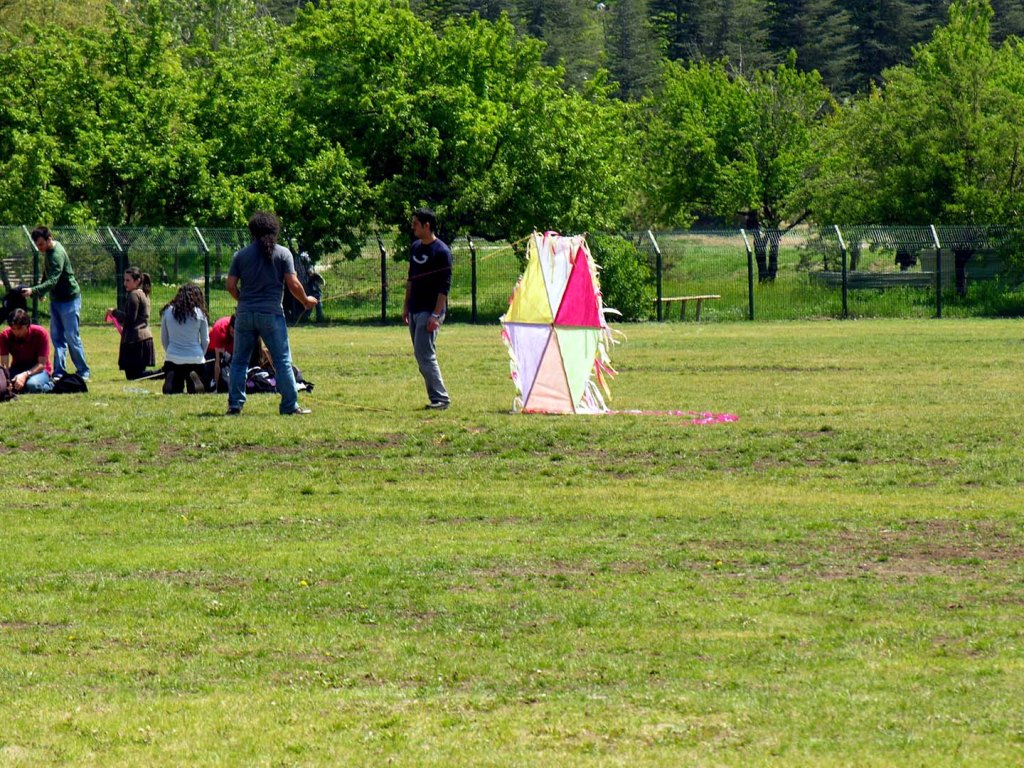 Alle de bir başka mekandır uçurtmalara… Atatürk Anıtı’nın yeşil çimlerinde uçurtmalar yapılır, uzun ipleri bağlanır ve ağaçlara takmadan havaya yükseltme başarısının mutluluğu yaşanır.