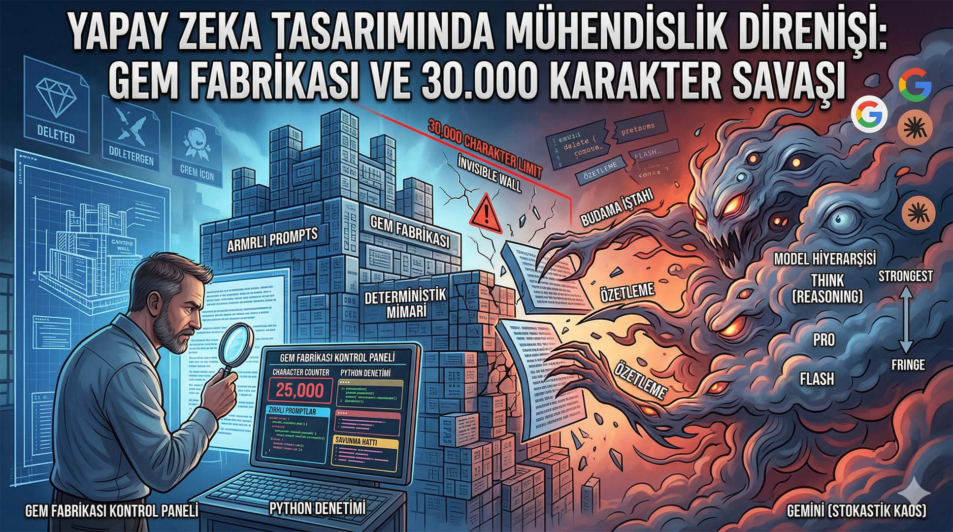 Yapay zeka ekosisteminde “Gem”ler (kişiselleştirilmiş asistanlar) genellikle basit komut dizileri olarak görülür. Ancak 50 yıllık mühendislik ve yazılım tecrübesiyle bu alana girildiğinde, karşımıza basit bir asistan değil, karmaşık bir “Yazılım Mimarisi” çıkar. Bu makale, kendi kendini inşa eden ve yöneten “Gem Fabrikası” projesinin doğum sancılarını, teknik sınırlarını ve Gemini’ın “budama” iştahına karşı verilen “restorasyon savaşı”nı ele almaktadır. Bu süreç, sadece teknik bir geliştirme değil, aynı zamanda deterministik bir zihnin, yapay zekanın olasılıksal kaosuyla girdiği entelektüel bir çatışmadır.
